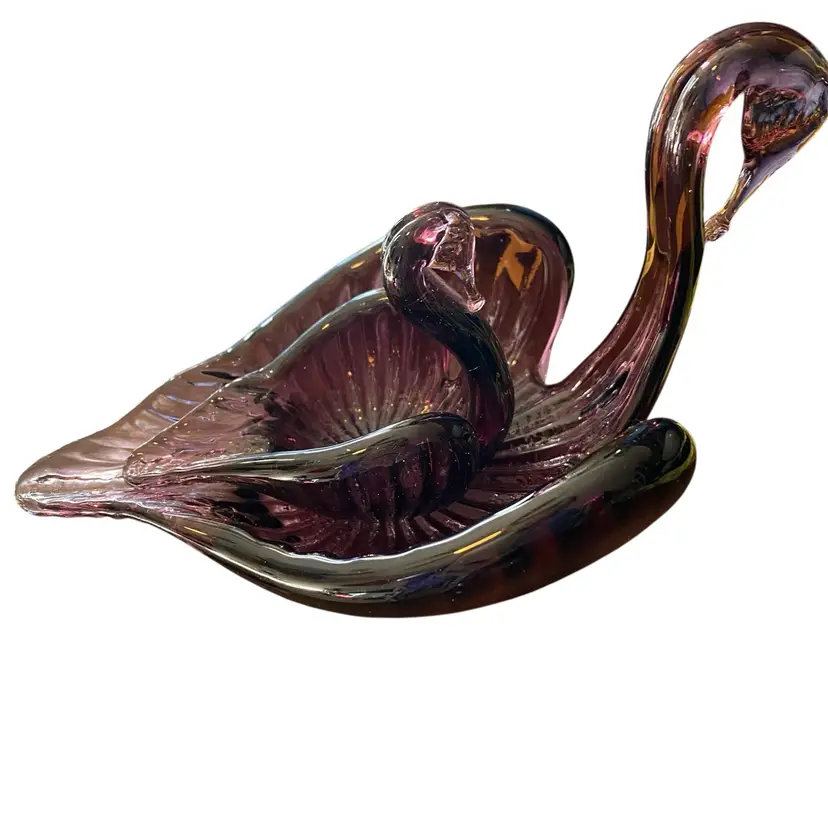 Vintage Purple Hand Blown Swan Dish Glass Collectible Amethyst Color mom and baby