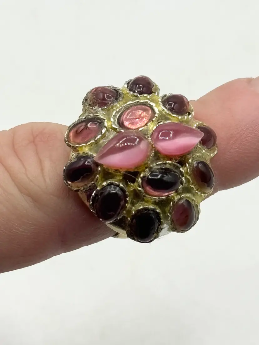 Vintage purple rhinestone adjustable cocktail ring. Adjustable ring with purple stones, vintage ring. MN56H.
