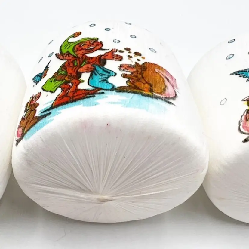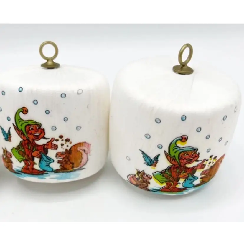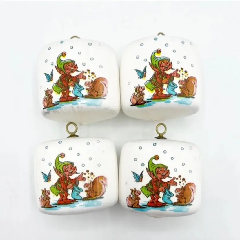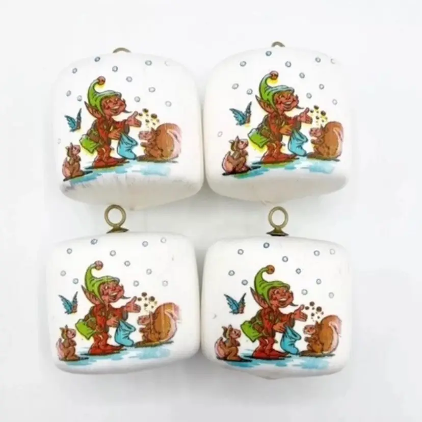Vintage Pyramid Satin Sheen Christmas Ornaments Elf Pixie White Set of 4 2"