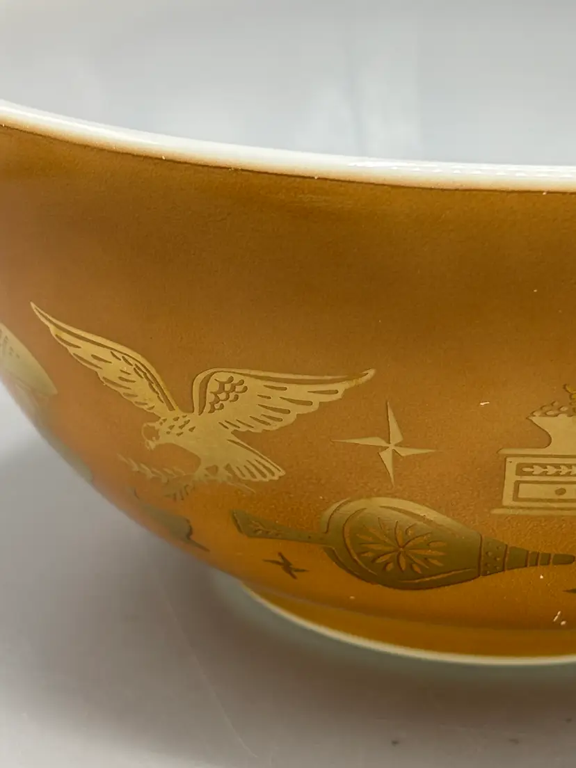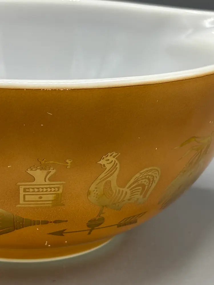 Vintage Pyrex Americana Cinderella 1 1/2 qt bowl. This is a lovely pattern for any collector. This does have scratches, refer to pictures for details.