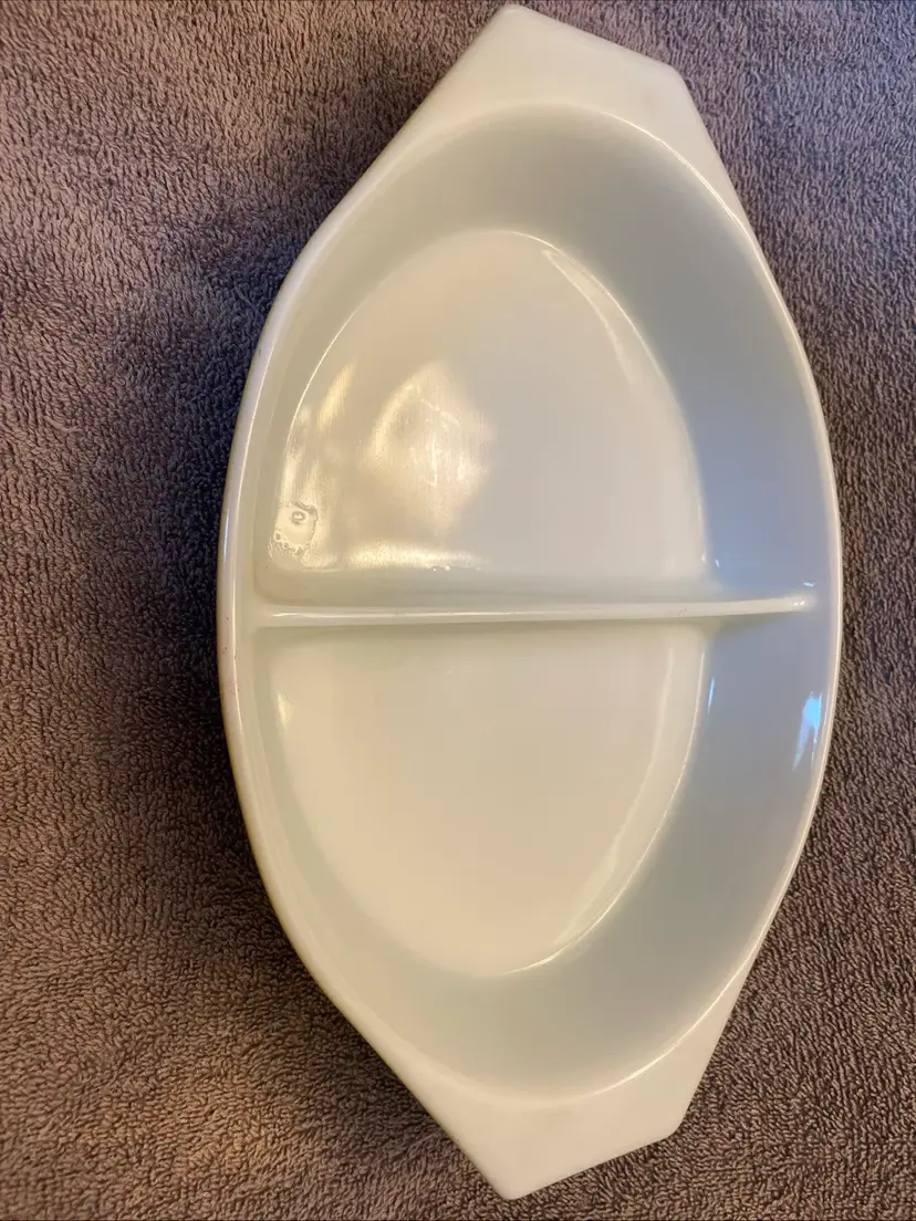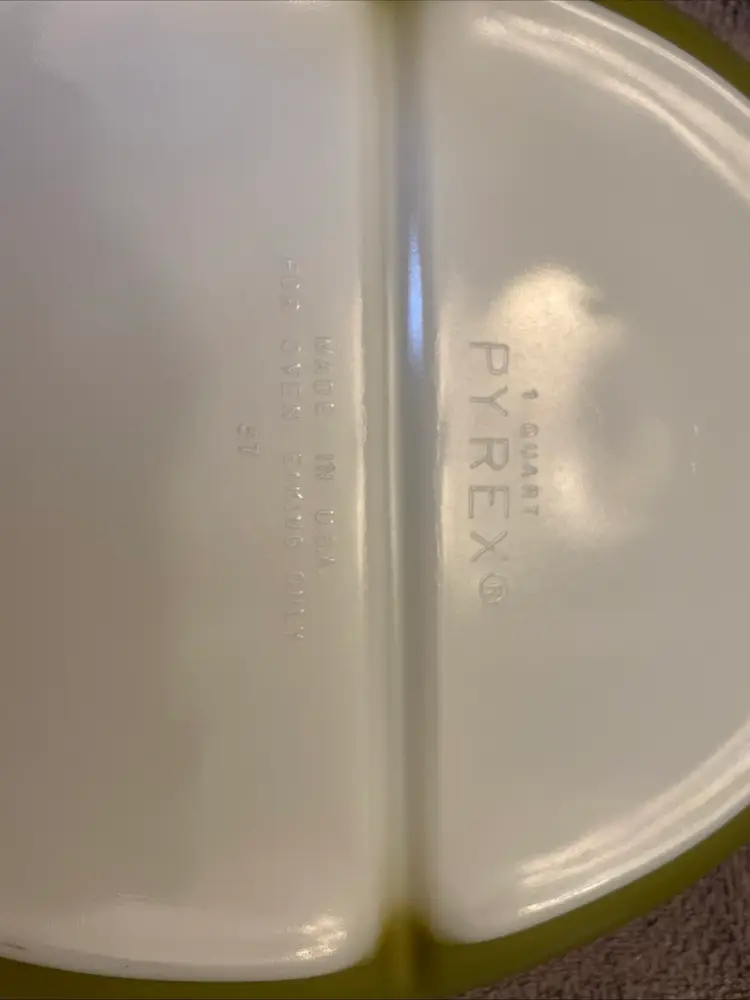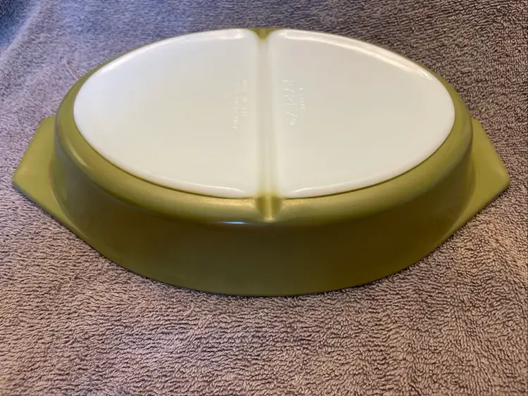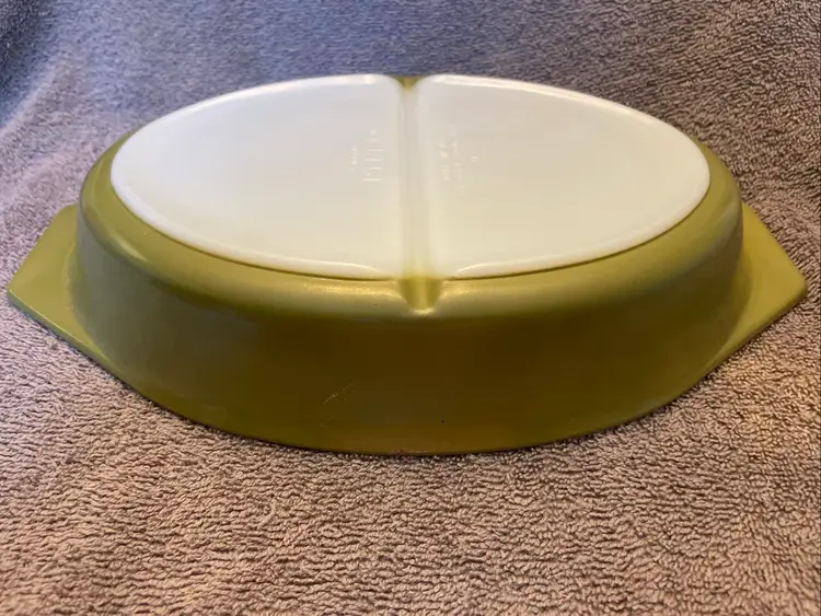 Vintage Pyrex Divided Casserole Dish, Verde/Green Olive Pattern, 1.5 Qt, No Lid
