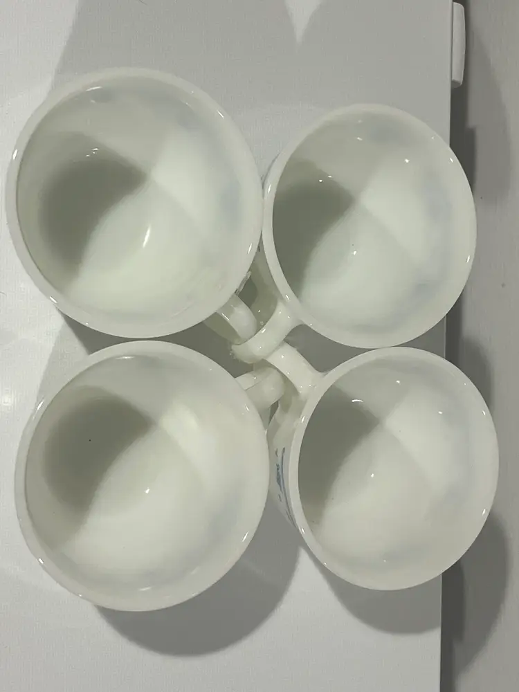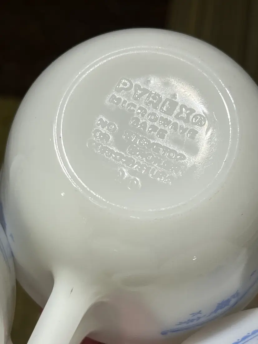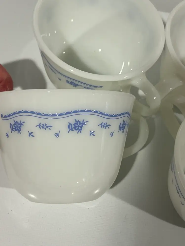 Vintage Pyrex Morning Blue Floral Coffee / Tea Cups, 9oz. Set of 4. Good condition no chips no discoloring.
