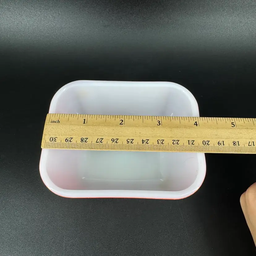 Height is approximately 2.5” Width is approximately 4” No chips or cracks Does have some paint wear