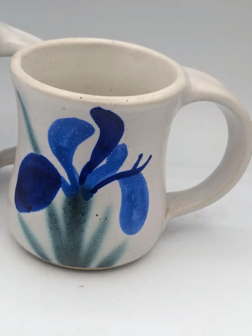 EUC Vintage PNW Washington State Studio Art Pottery Pysht 1987 Blue Iris Flower.
