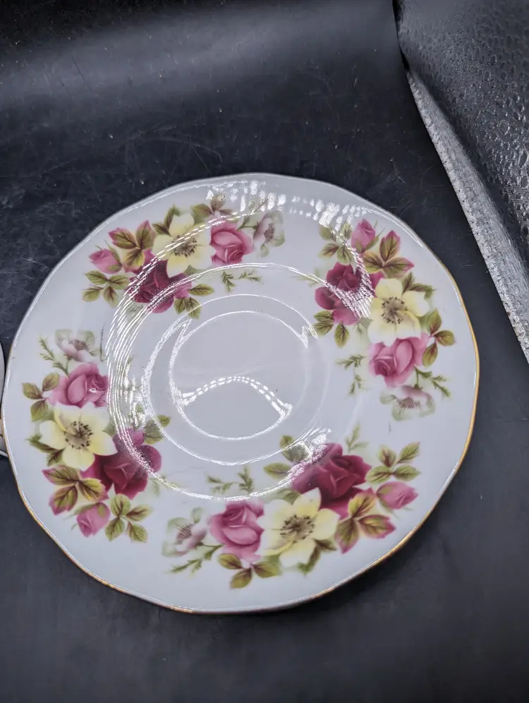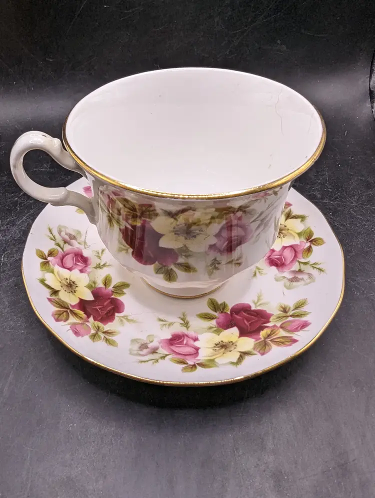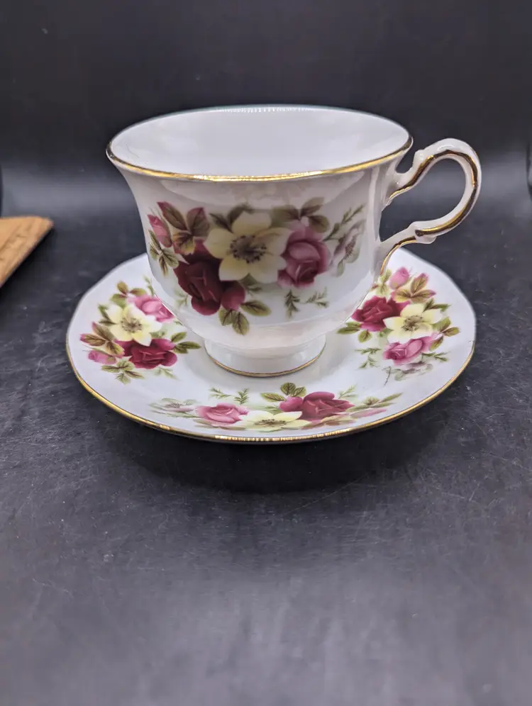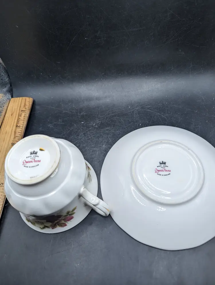 This is a lovely Vintage Queen Anne Bone China Tea Cup & Saucer Red & Pink & Yellow Roses England #8501. No chips or cracks. Please see all pictures for condition and measurements.
