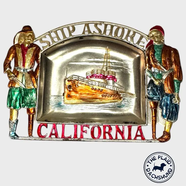 Very rare unusual trinket dish depicting the famous Queen Mary ship. Vibrant colors. Made in the 60’s in Japan. Fabulous when people drove around the country for vacations.