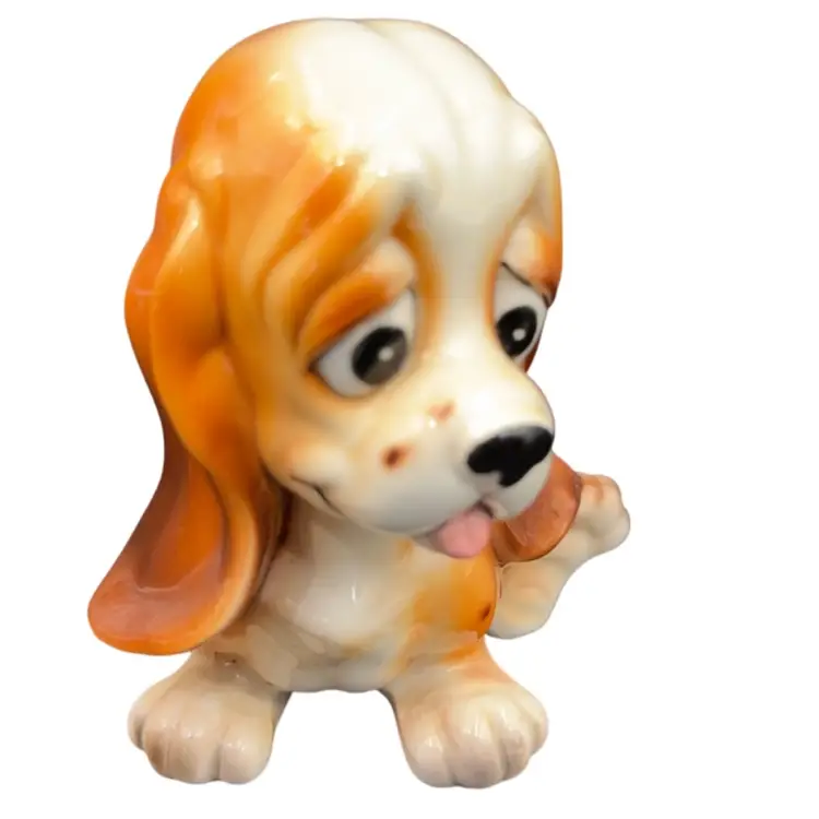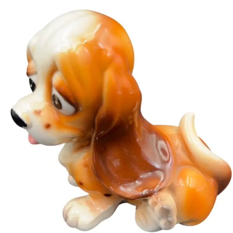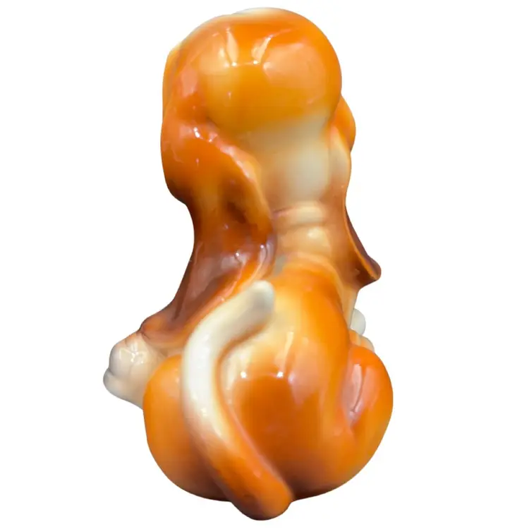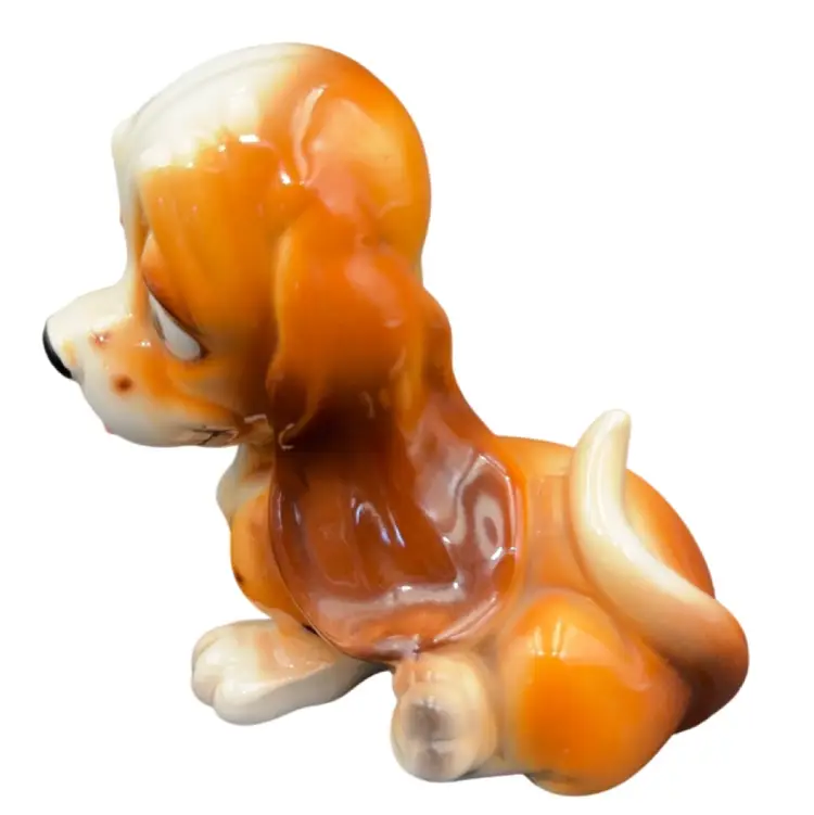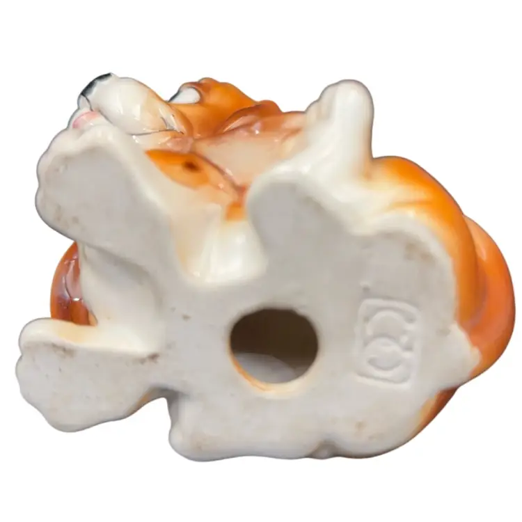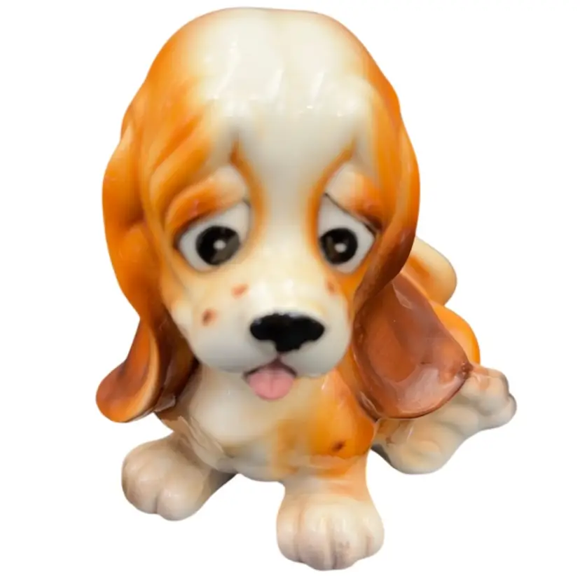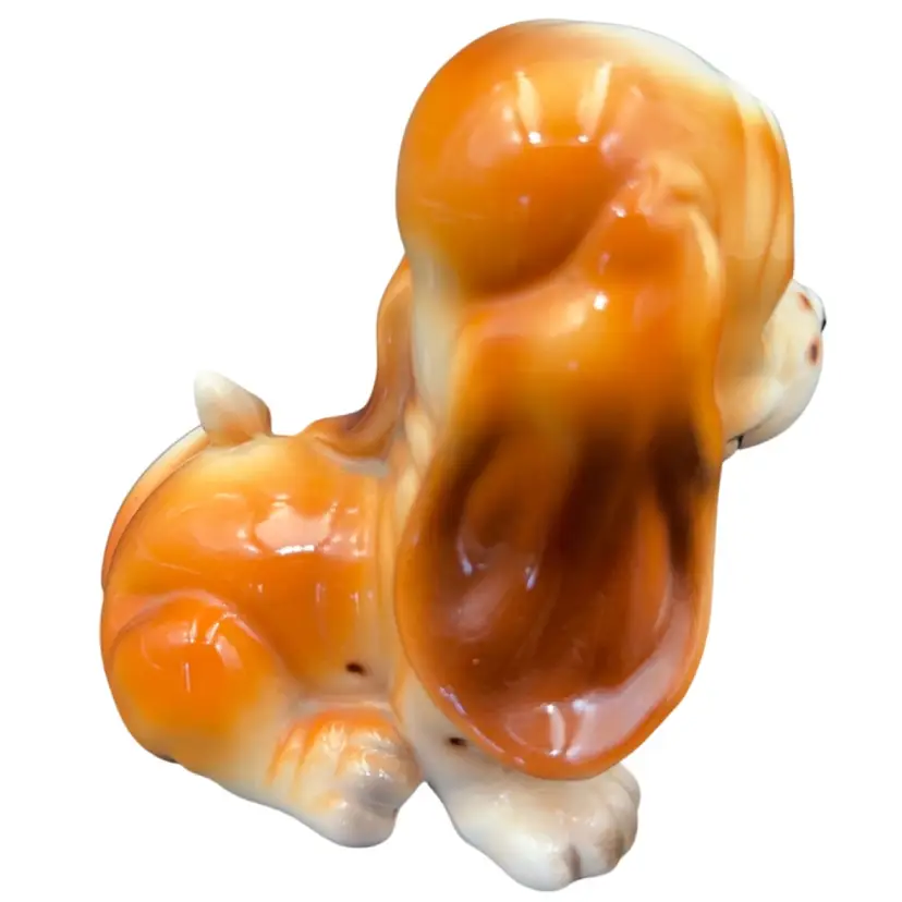 4”W 4”T no chips, cracks or brakes in wonderful condition. It has makers mark on the bottom. It’s a very adorable little dog.