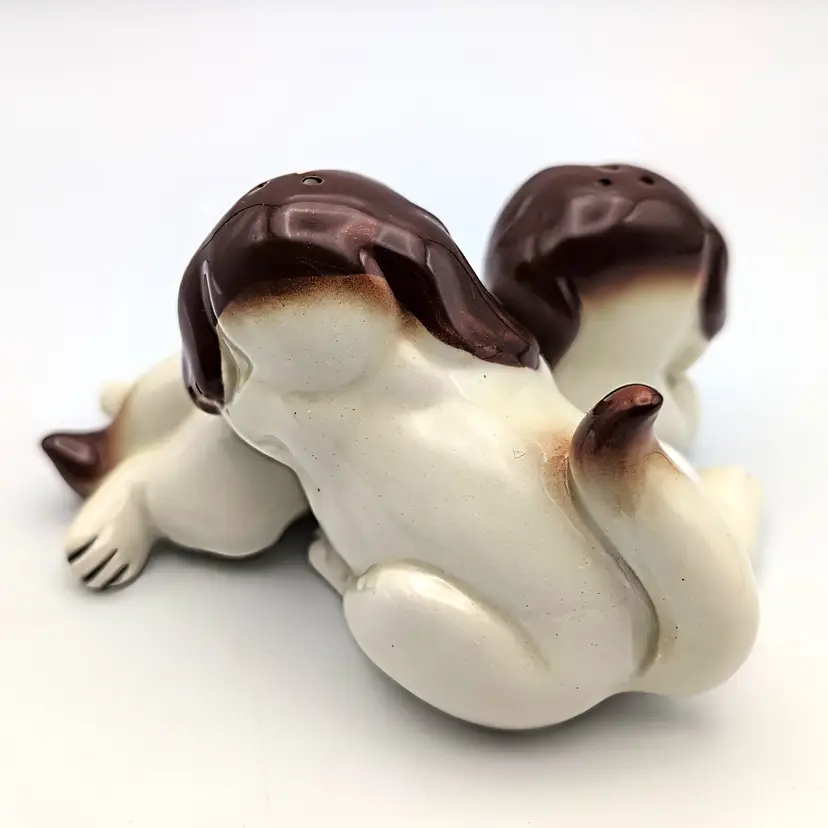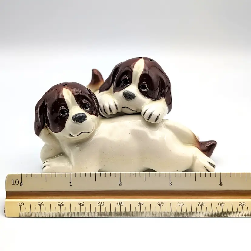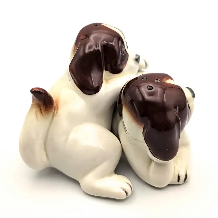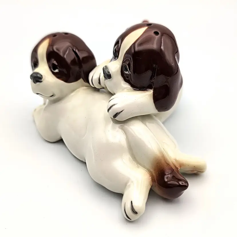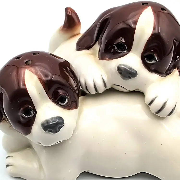 Vintage Quon Quon St. Bernard Cuddling Stacked Salt And Pepper Shakers Japan