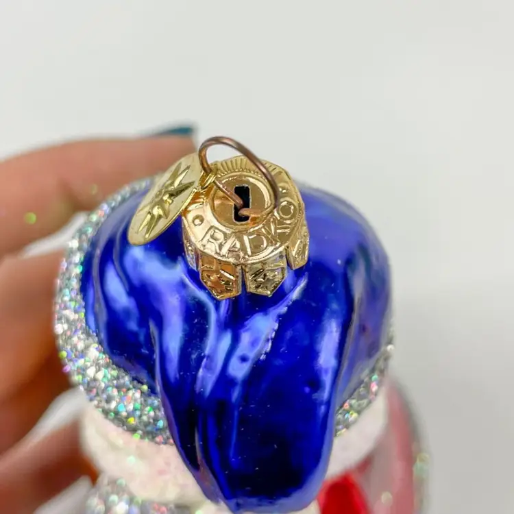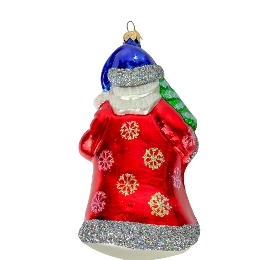 Add a touch of vintage charm to your holiday decor with this Radko Santa Claus ornament. The glitter accents add sparkle to your festive setup.