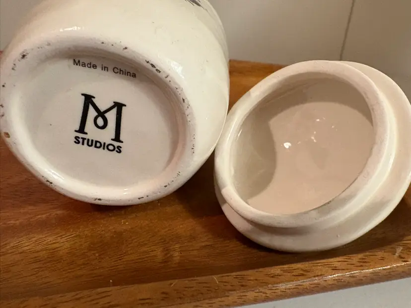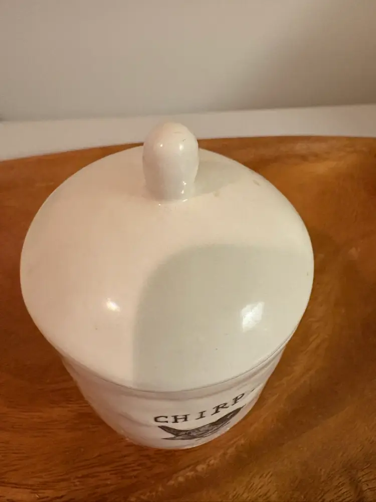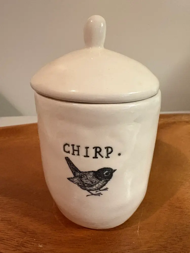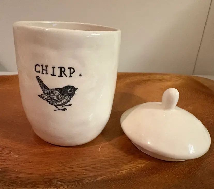 Gorgeous very early Rae Dunn Chirp sugar bowl. It has one of the earliest brand labels on the bottom-- M studios. It’s in excellent condition, no crazing,chips, or stains.