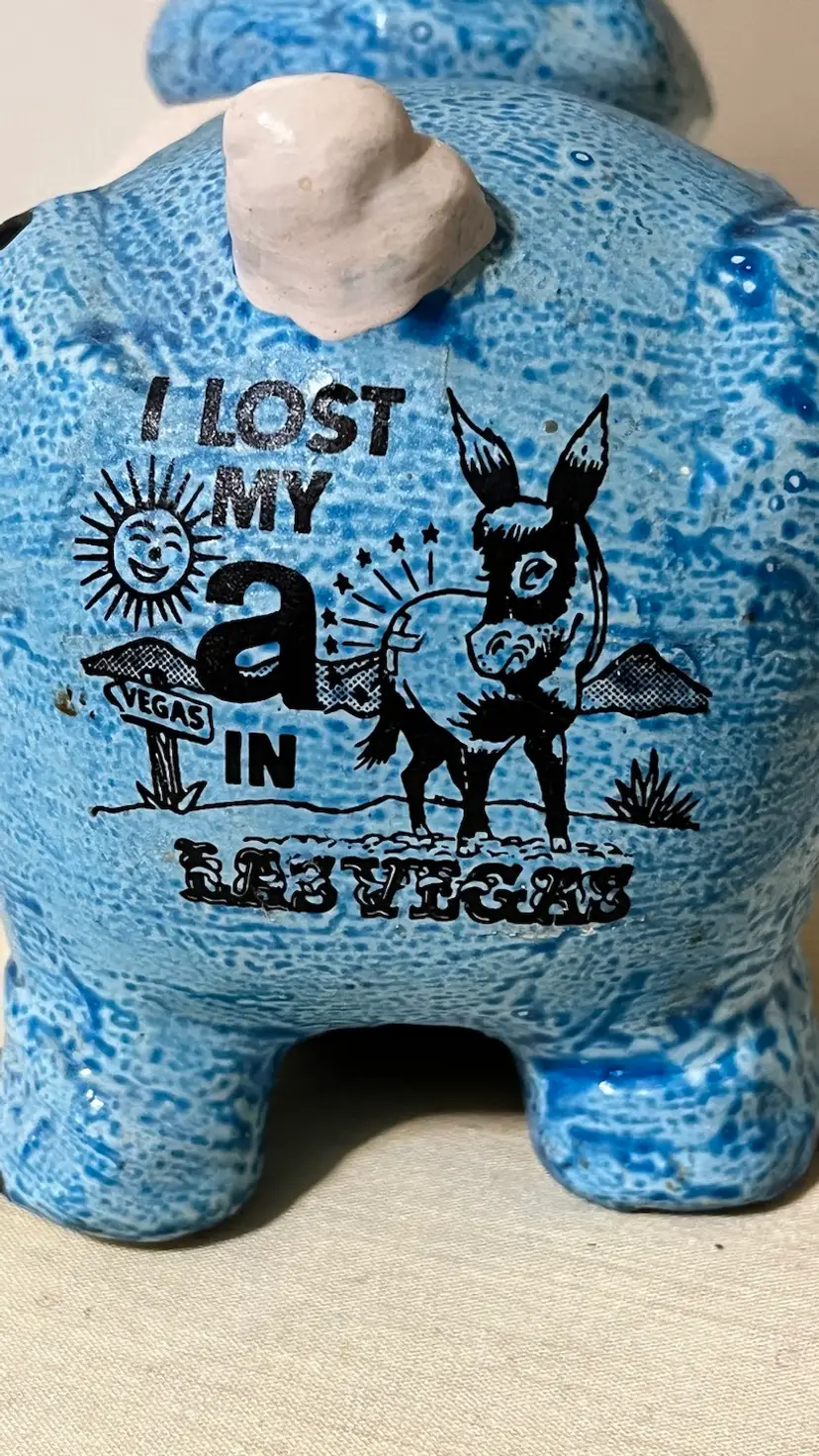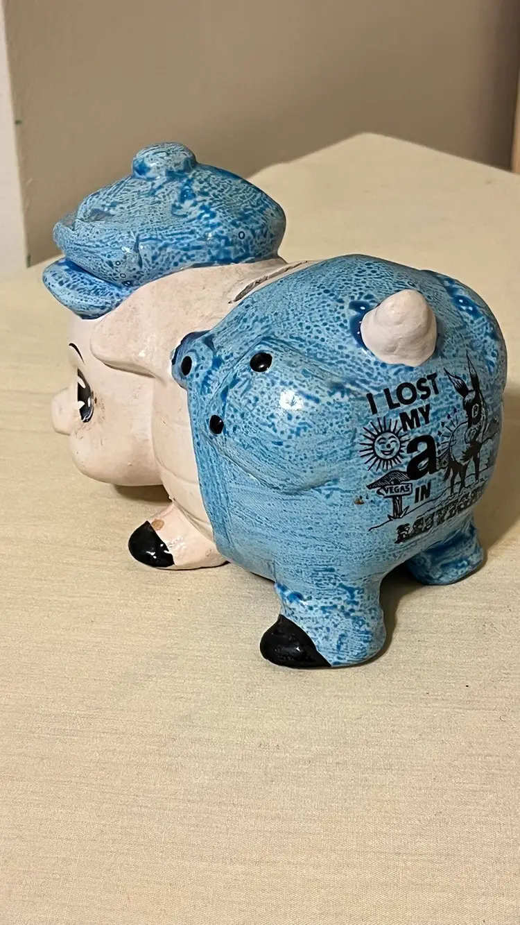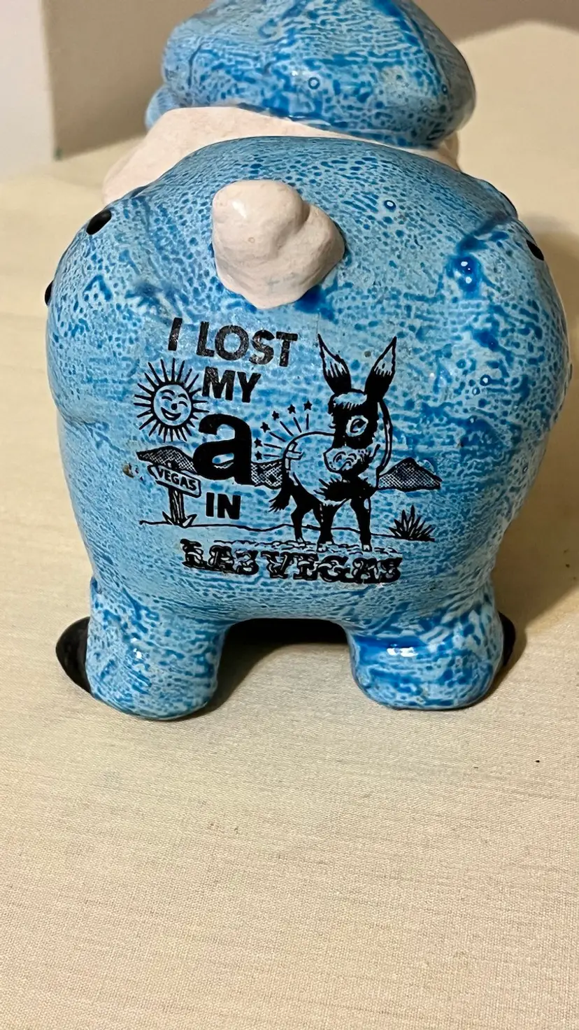Cutest little pig. Has some paint wear but in really good condition for age and having survived Vegas. Has his stopper.