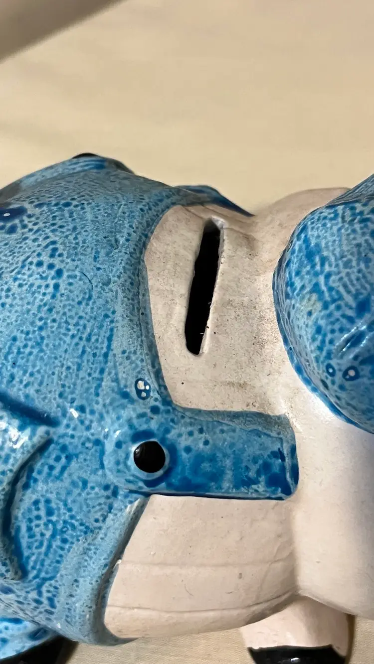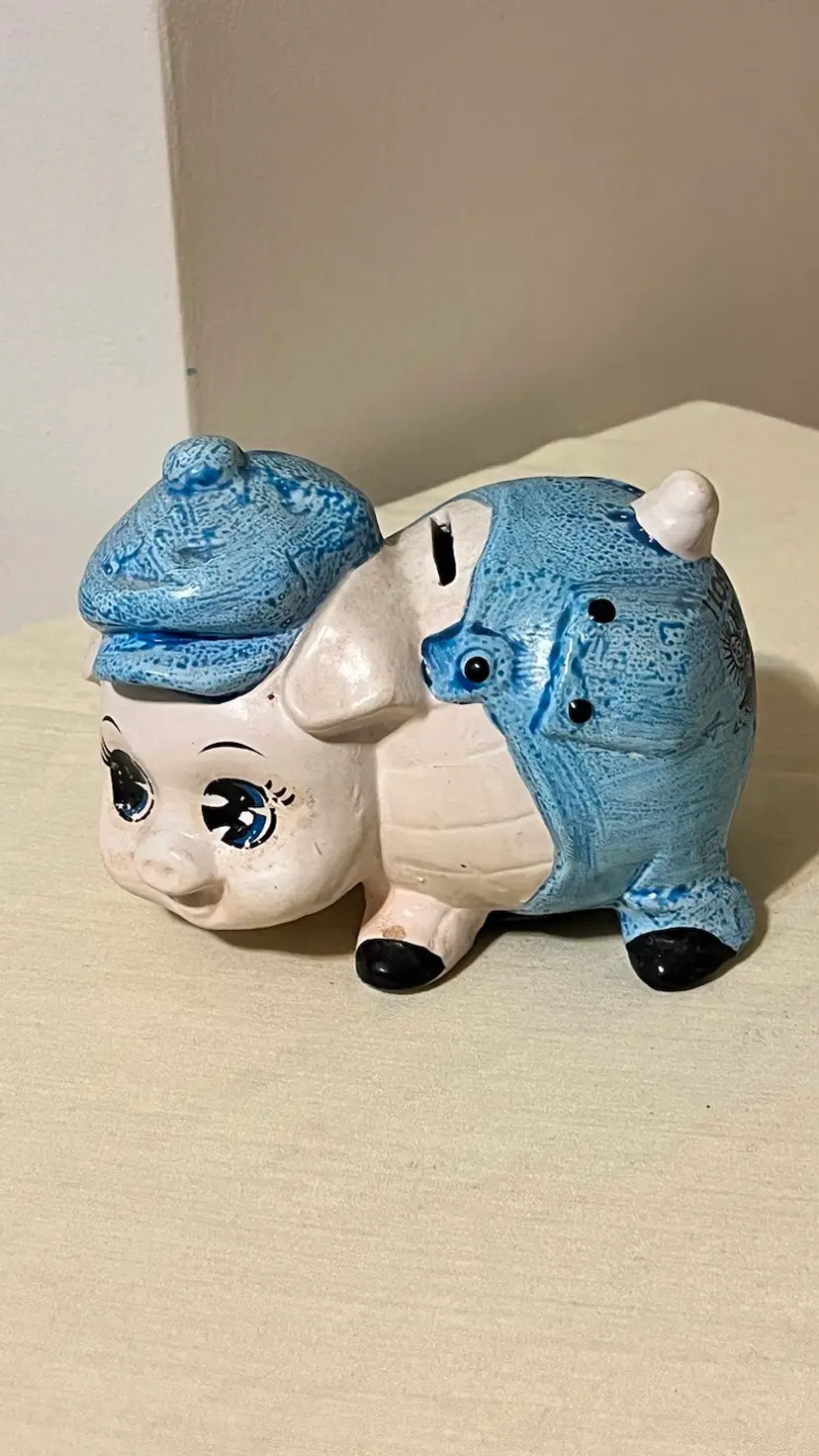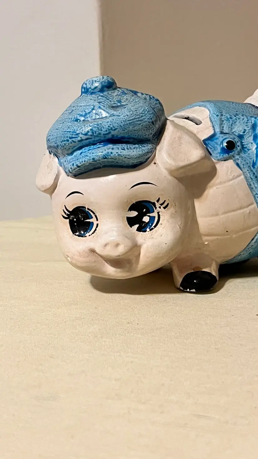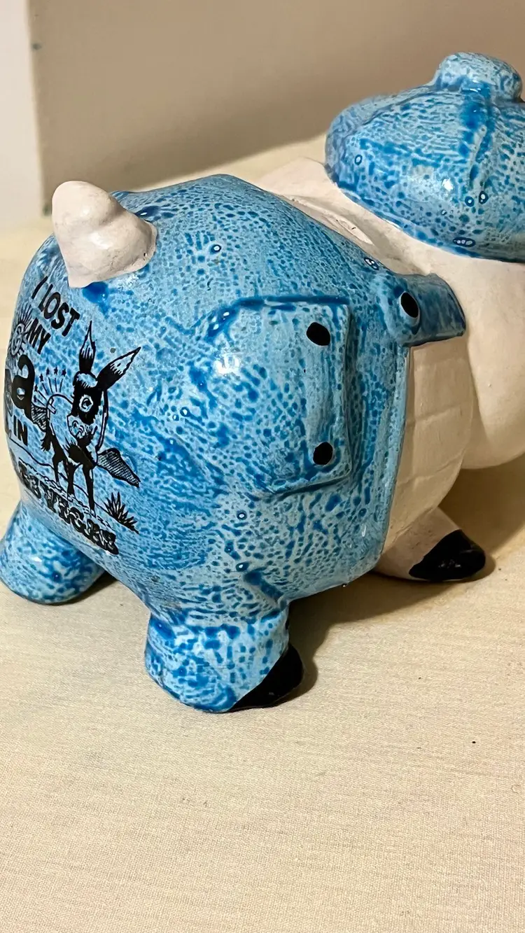 Cutest little pig. Has some paint wear but in really good condition for age and having survived Vegas. Has his stopper.