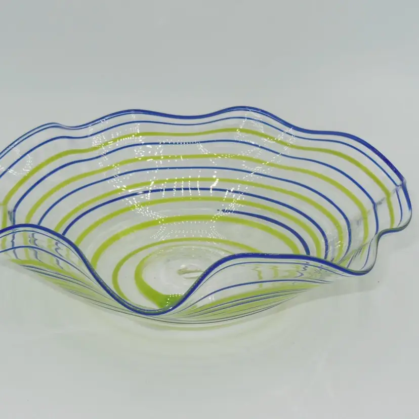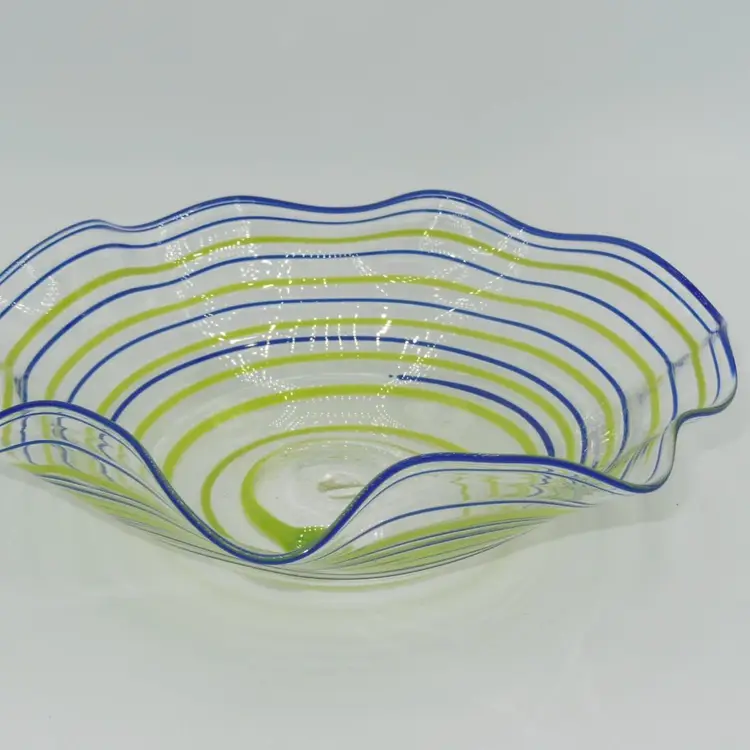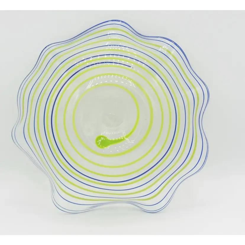 This is a #Vintage & Rare, OOAK, 1996, Pean Doubulyu #HandBlown Glass, #Cobalt and Lime WAVIE #Bowl. Artist Signed & Dated. It measures 8.0" in diameter and is approx. 2.5" high. It is in great condition. Please see all pics, as they are part of the description.