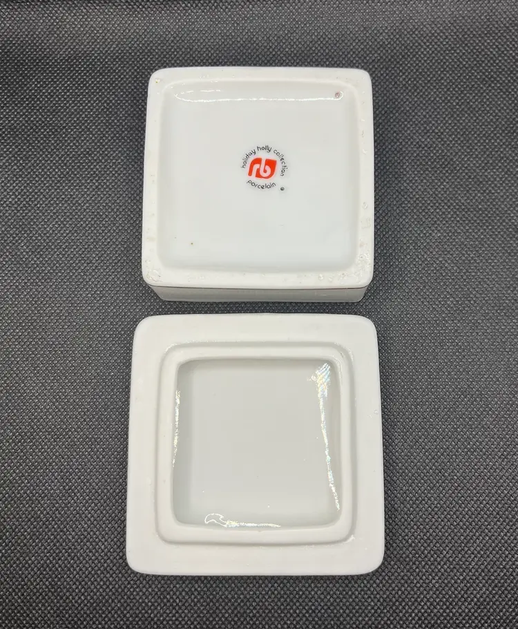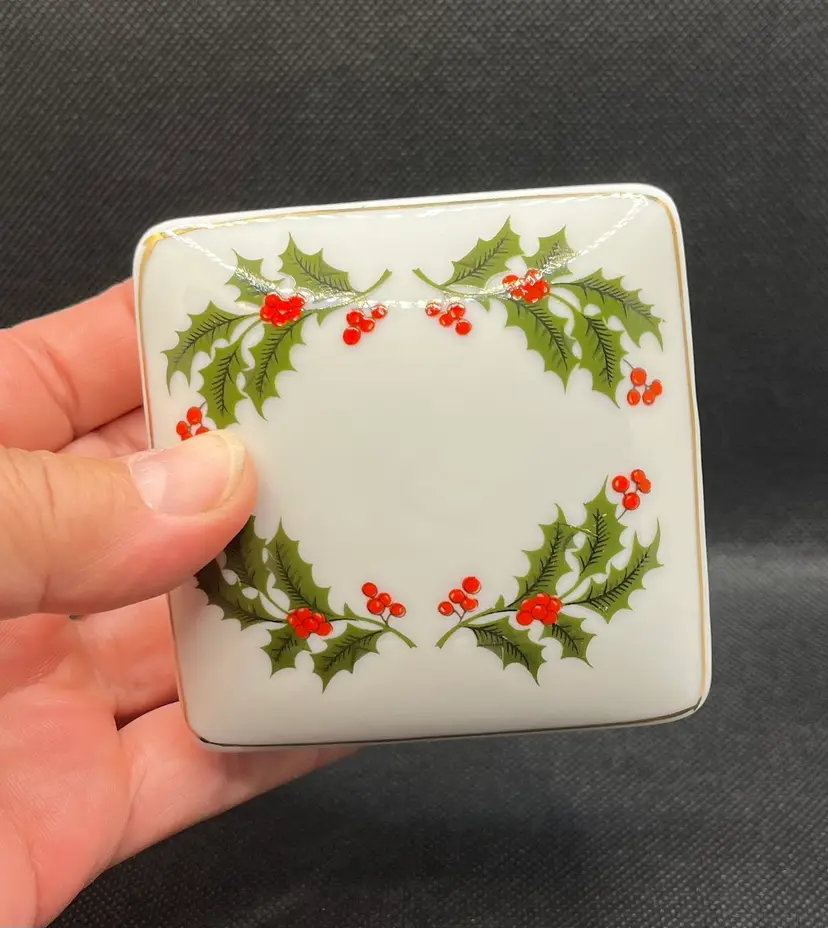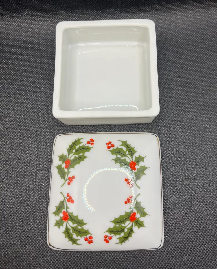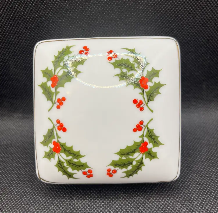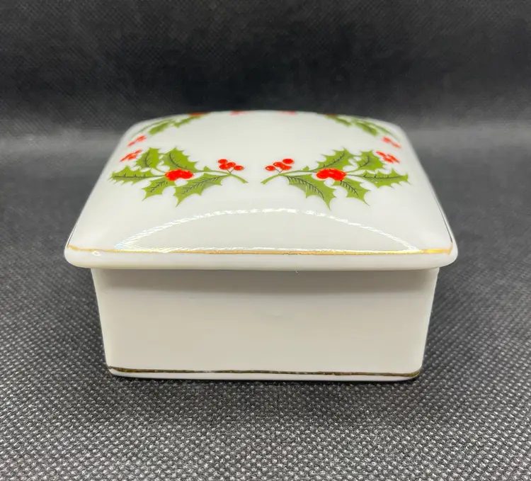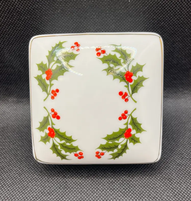 Vintage RB Holiday Holly Collection Lidded Porcelain Trinket Box Japan Christmas. Minimal surface wear or scratches. No chips or cracks.