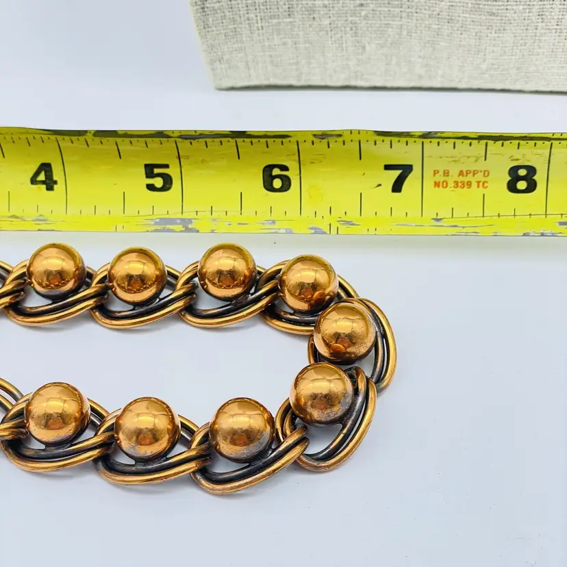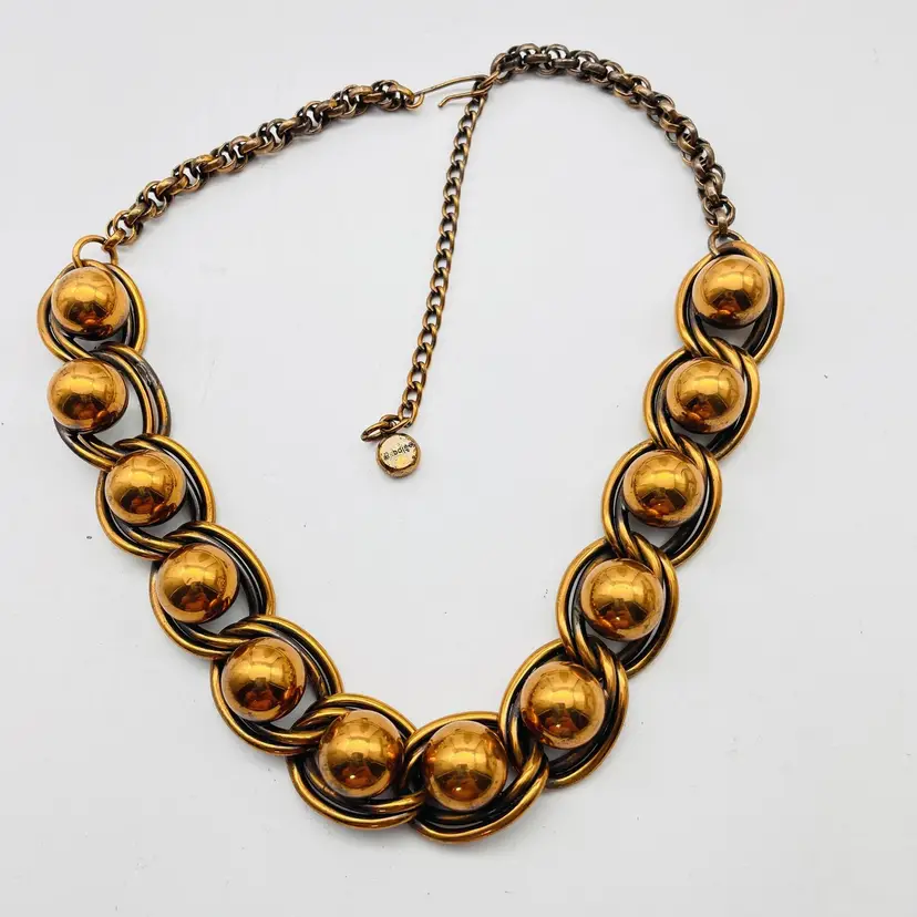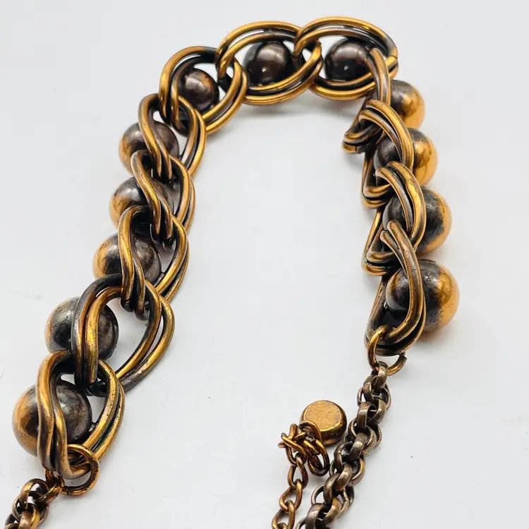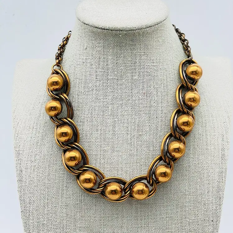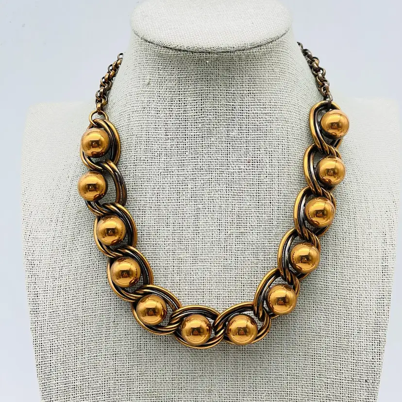 Vintage REBAJES Statement Chain Necklace Copper Ball Mid Century