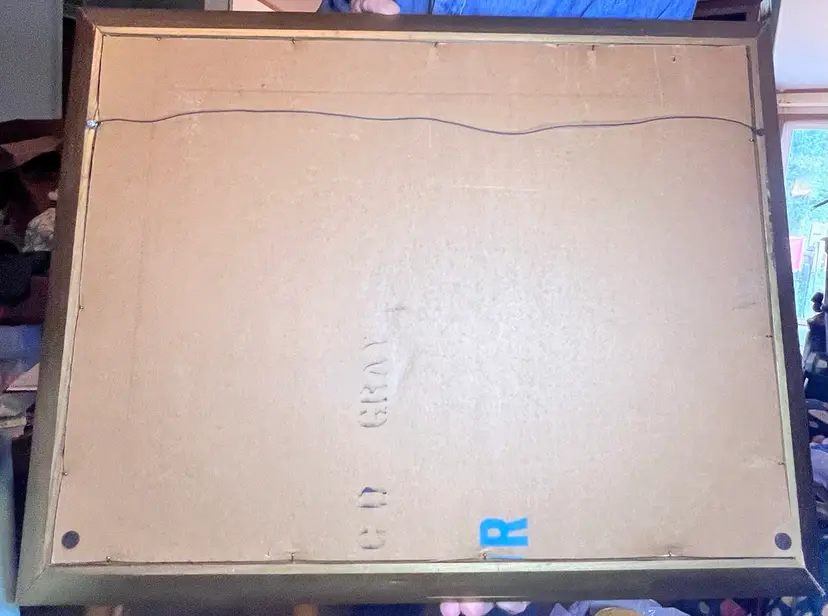 Frame is 21 1/4” by 27”. Canvas is 17 3/4” by 23 1/2”
