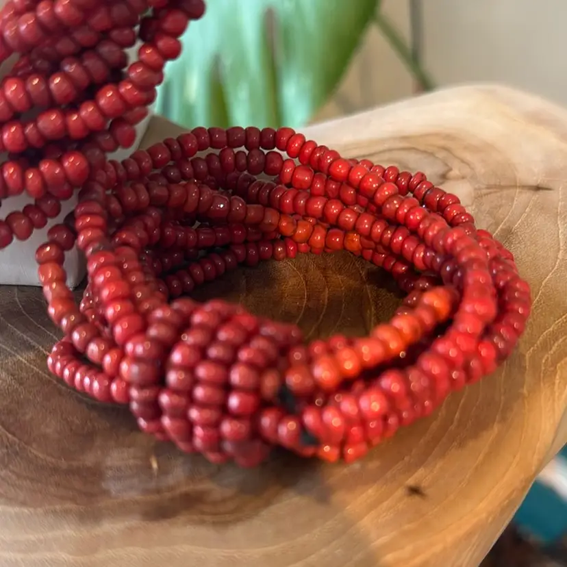 Beautiful vintage twisted,multi strand, red coral necklace and bracelet set. Bracelet is stretched style and necklace measures 22 inches.