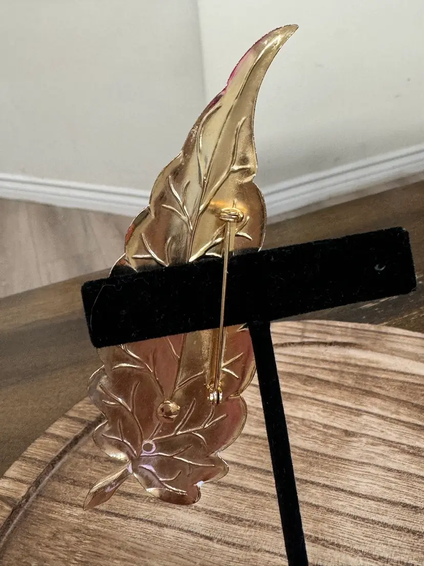 Not your average size leaf brooch This is more of a statement piece and plus it has a bumblebee to top it off! Size is 4.5” x 1 1/4”