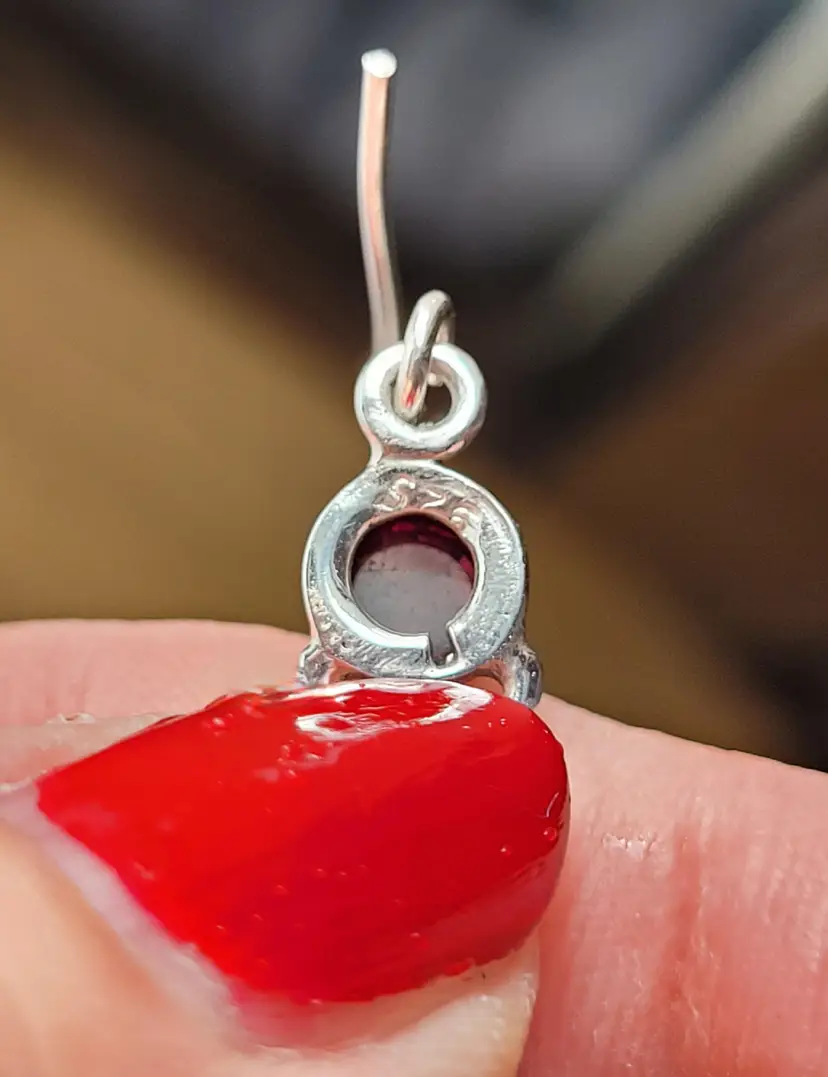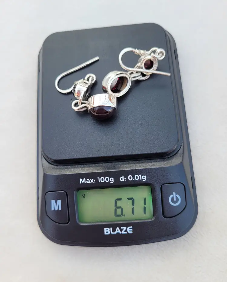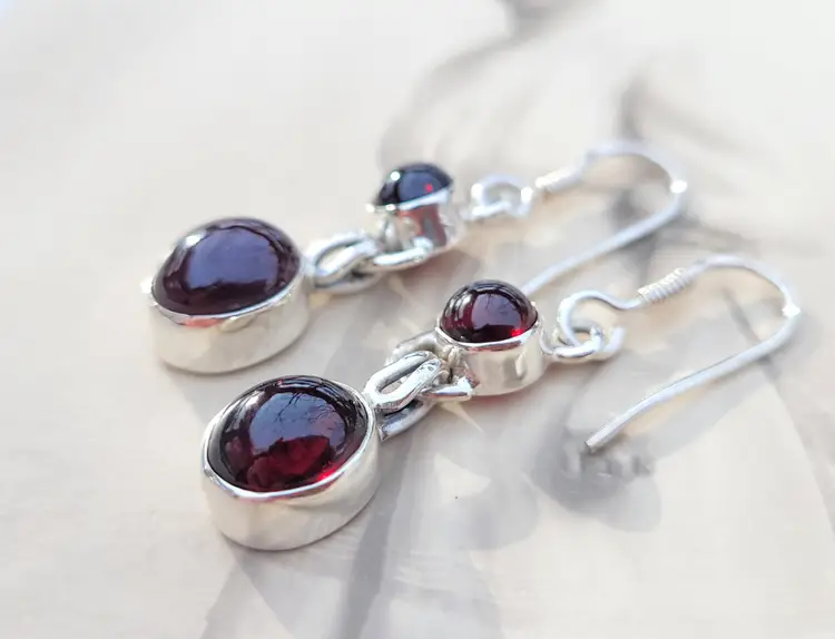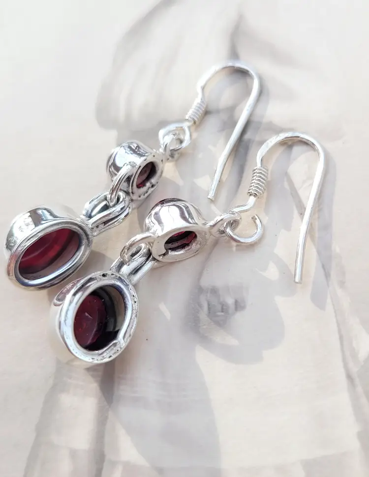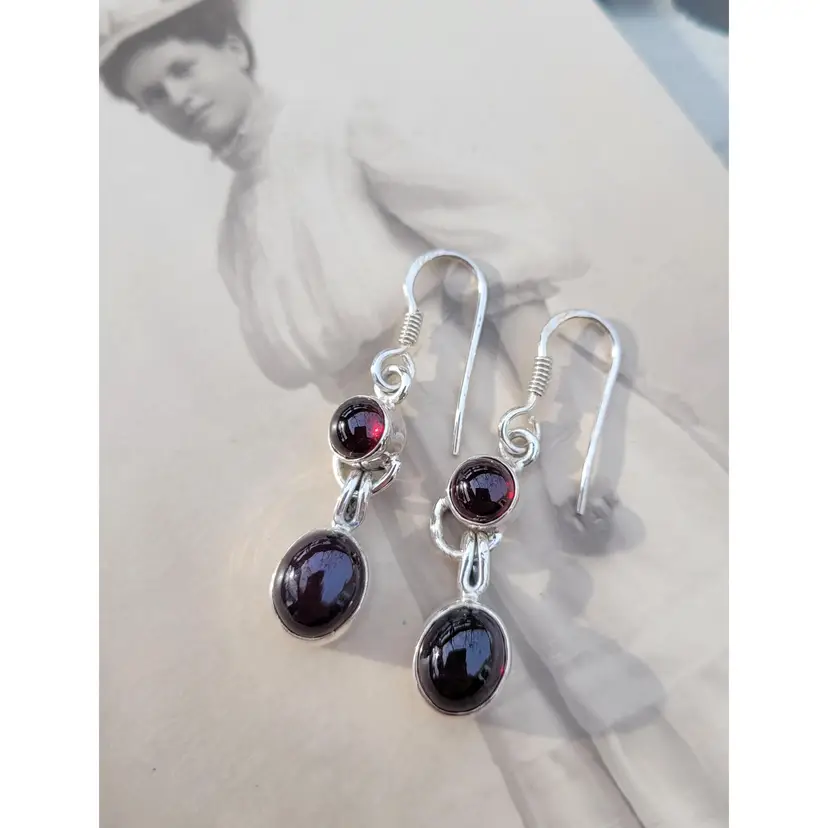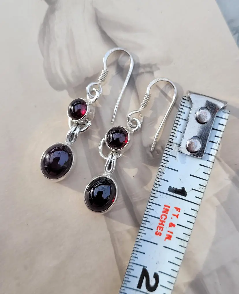 Rich red genuine garnet cabachons set in solid sterling, from an estate and circa 1990s. The stones have been verified via Presidium. In good condition, please see pictures for details and measurements.