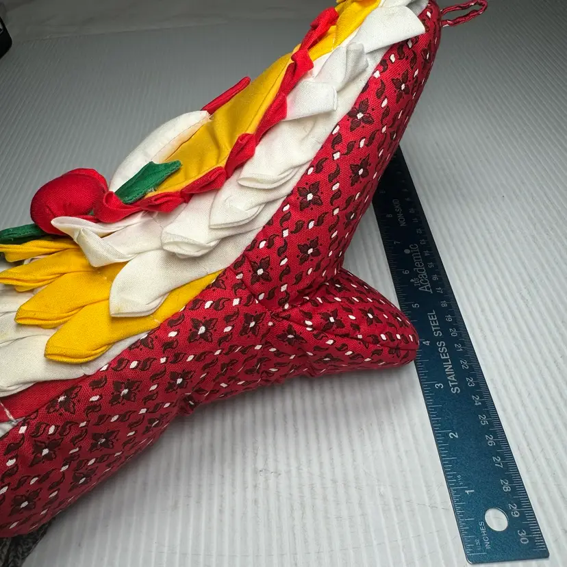 Vintage Red Green Yellow Scalloped Holly & Berries Christmas Candle Oven Mitt