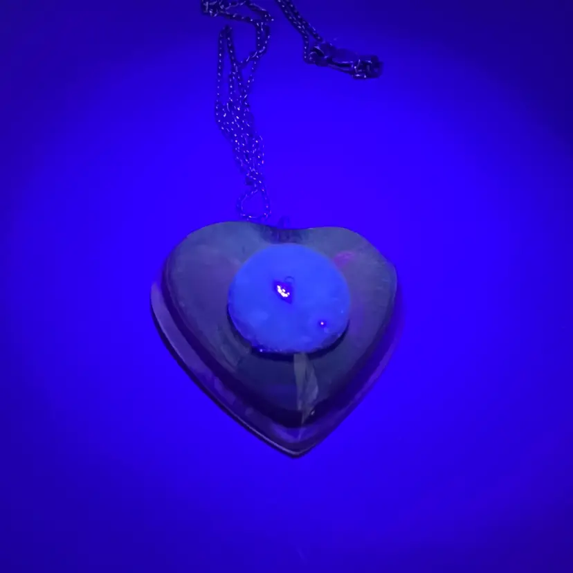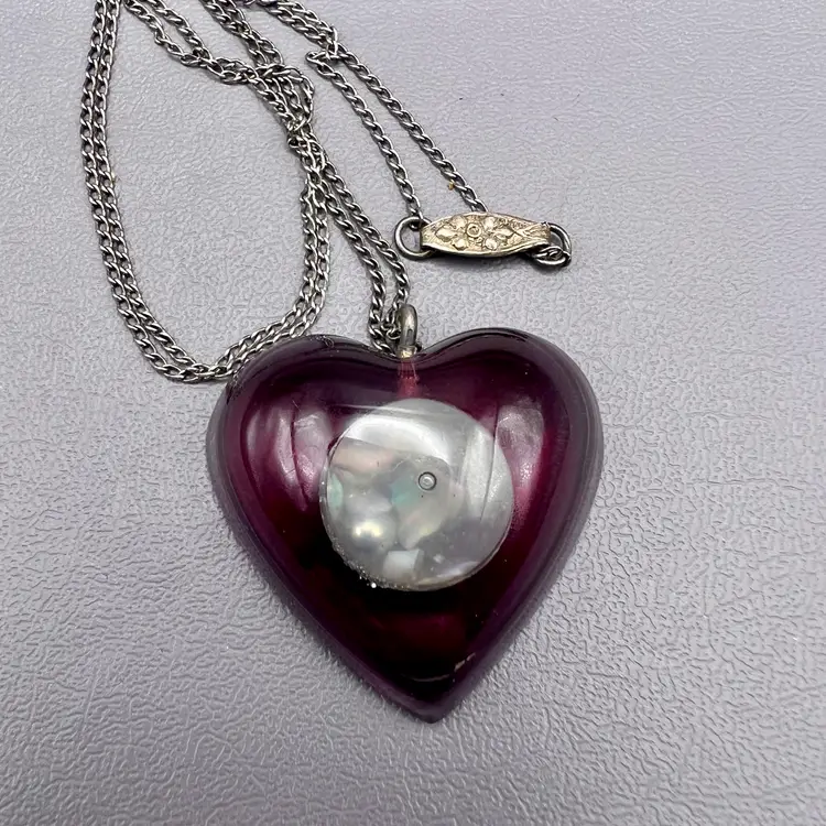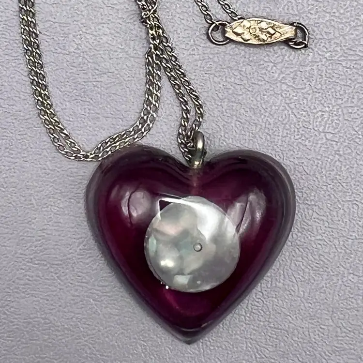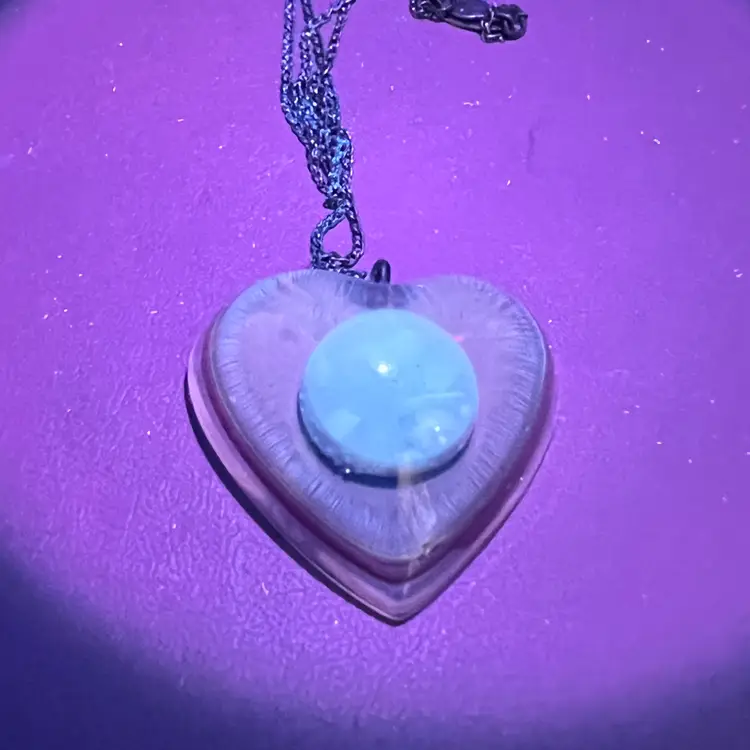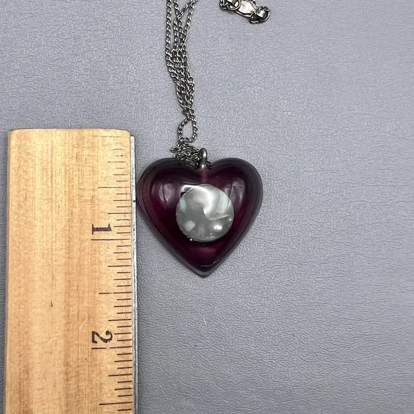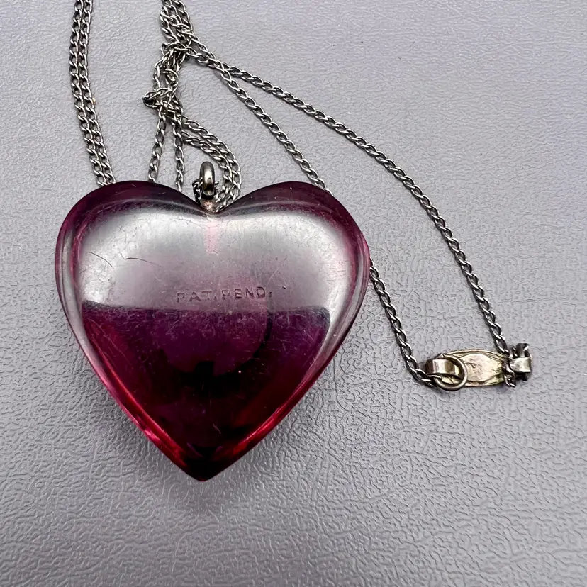 Vintage Red Heart 1" Pendant & Chain With Floating Opal Pieces Glows Pat. Pend