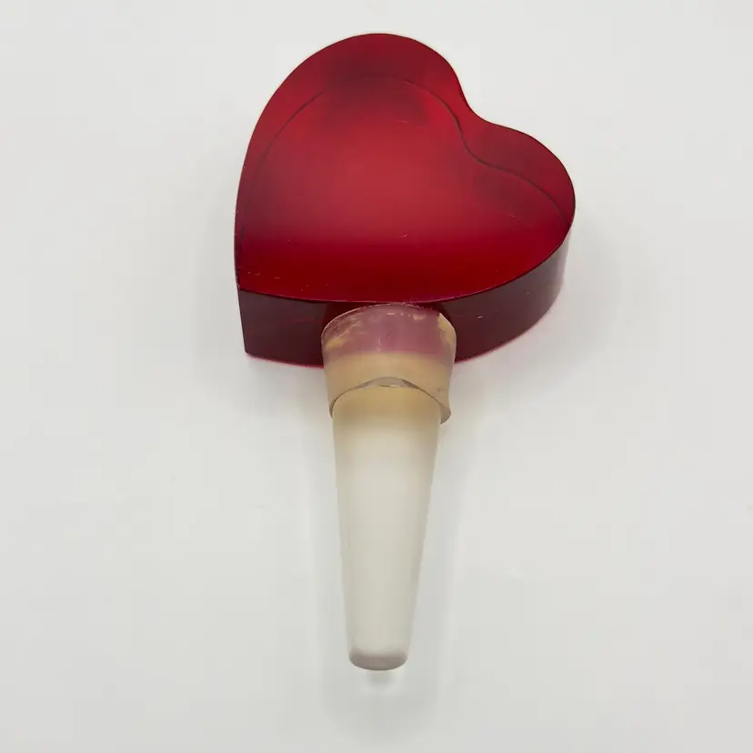 Add a touch of romance to your barware collection with this vintage red heart glass wine bottle stopper. Perfect for sealing your favorite wines or spirits with style. The vibrant red hue and heart shape make it a charming gift for a loved one or a delightful addition to your home decor. Excellent condition with no chips or cracks. Measures 4 inches. Weighs 4oz.