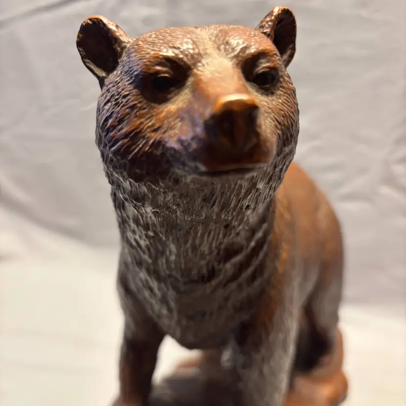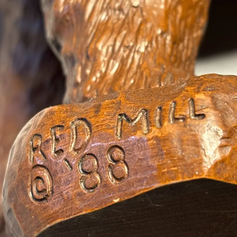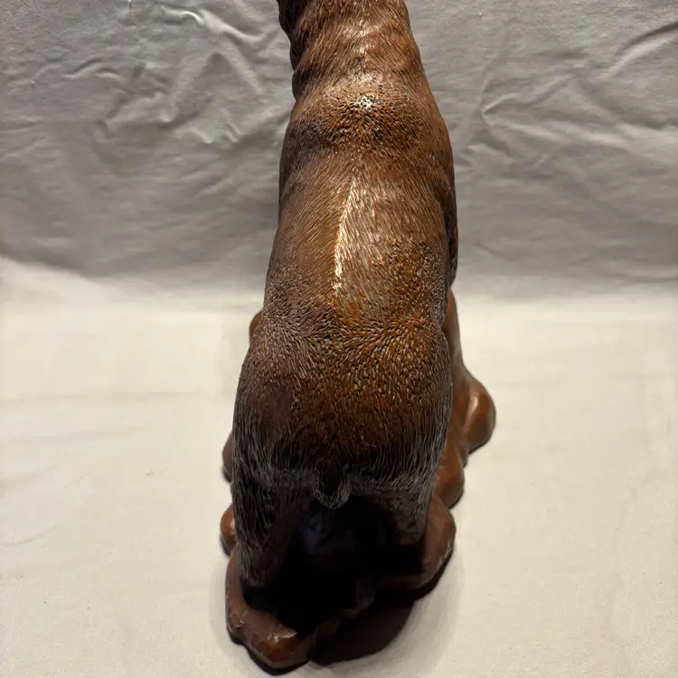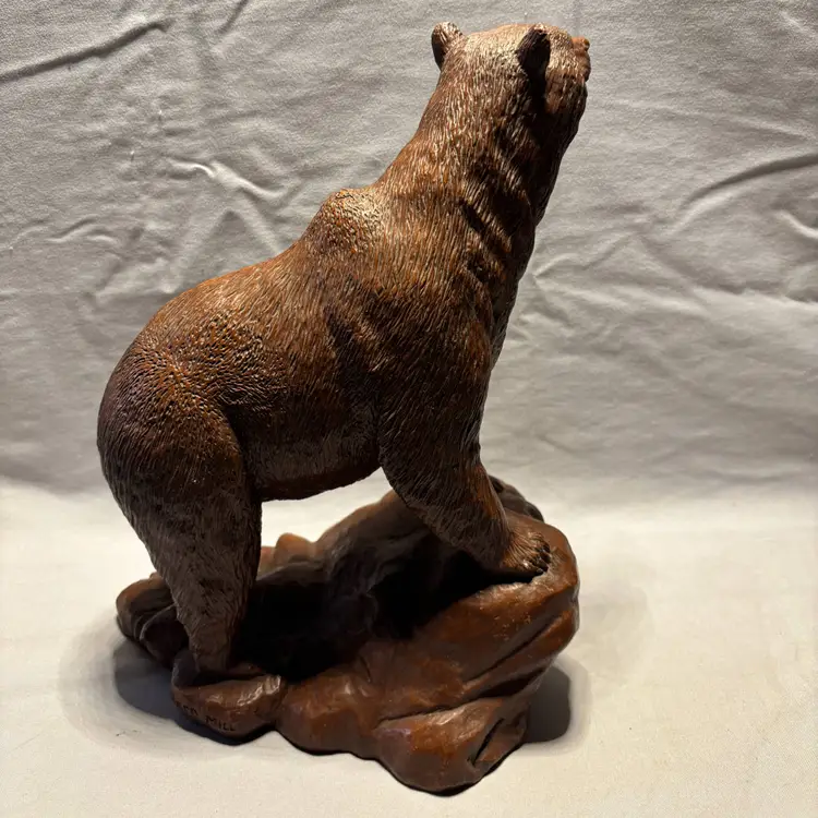 This Vintage RED MILL MFG Large Brown Bear and Rocks Figurine stands at 11.5 inches tall and 6 inches Wide, featuring a charming design of a bear with rocks. Made of resin, this figurine is a part of a collection of animal-themed decor from 1988. With a medium size and brown color, this American-style piece is perfect for any room and all occasions. The figurine is an original creation with carvings, showcasing the unique craftsmanship of that era. Made in the United States, this collectible figurine is a delightful addition to any decor.