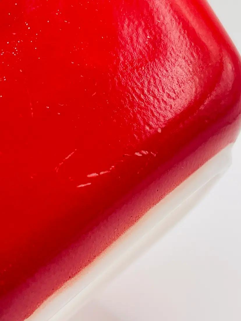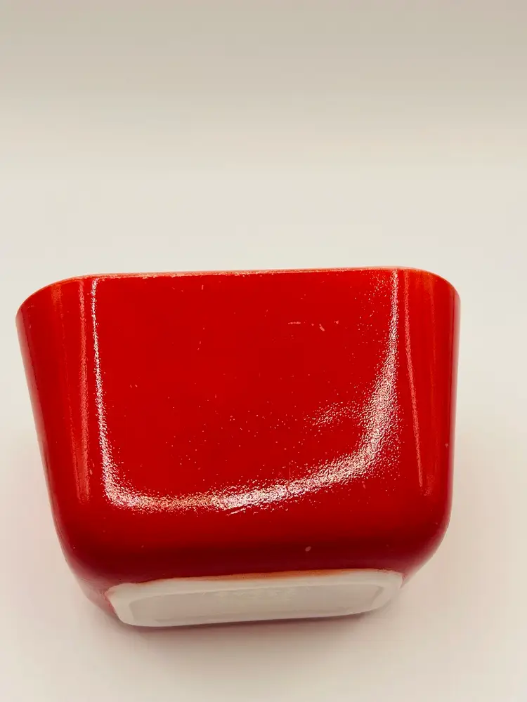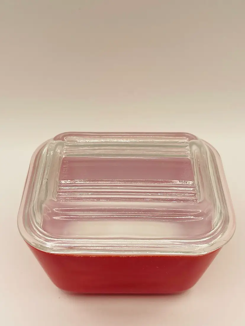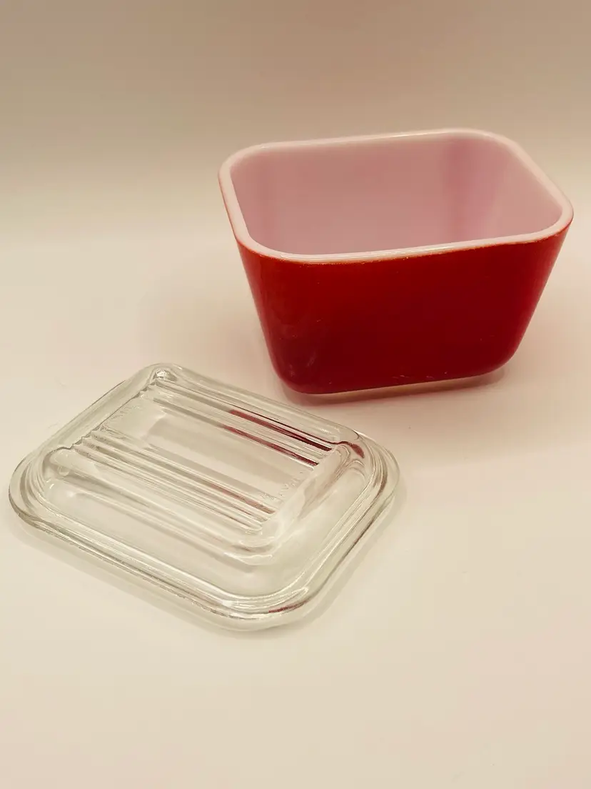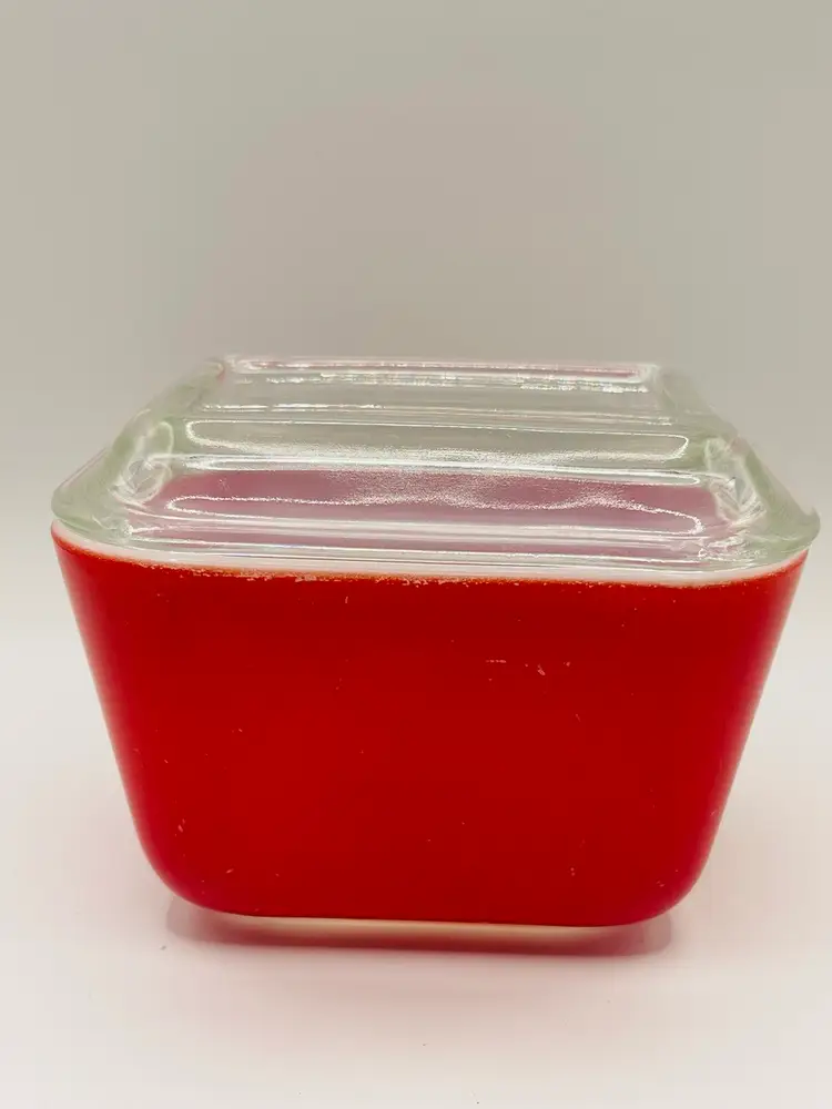 Vintage Red Pyrex Refrigerator Dish (Fridggie), with its lid.