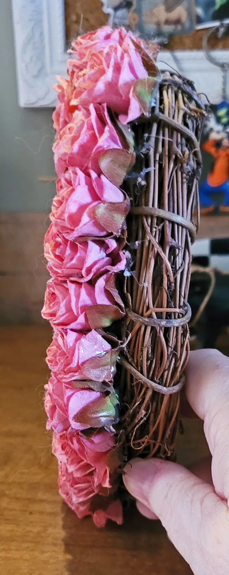 A wall hanger, shelf sitter or, maybe, use it as part of larger design. I had it hanging on a kitchen wall. From a smoke free home, please refer to the pictures for its condition and size. Approx: 8x8x2