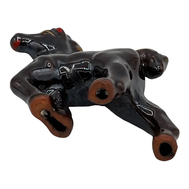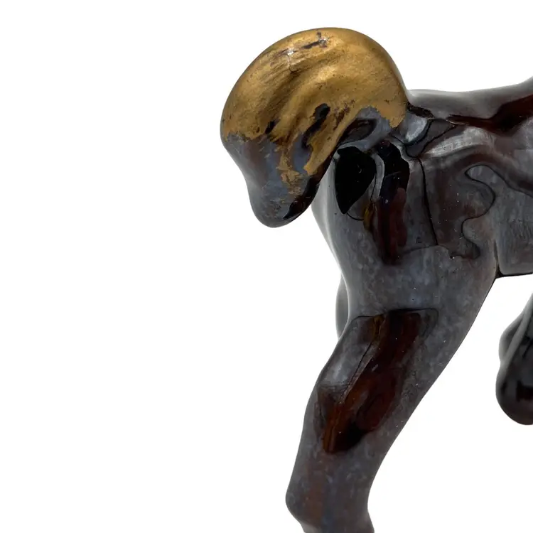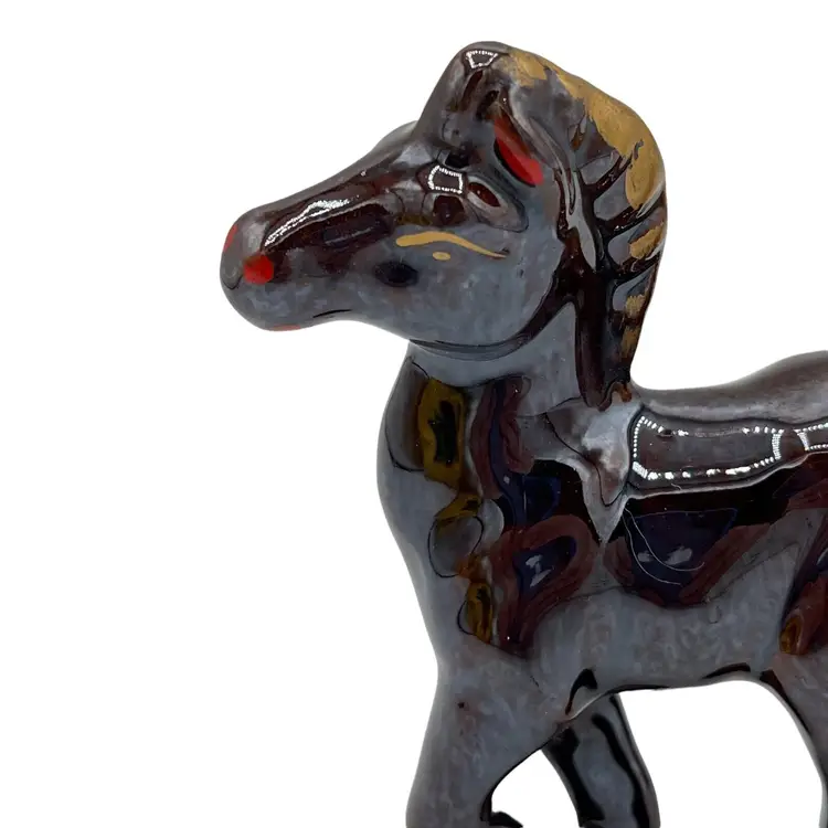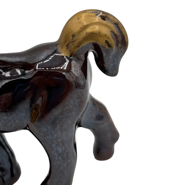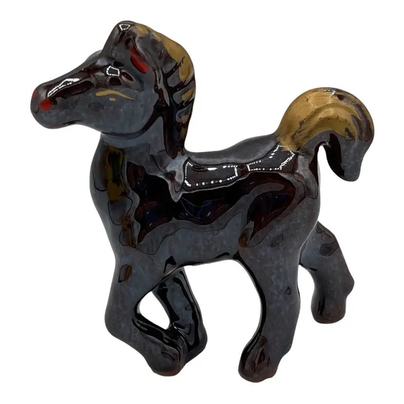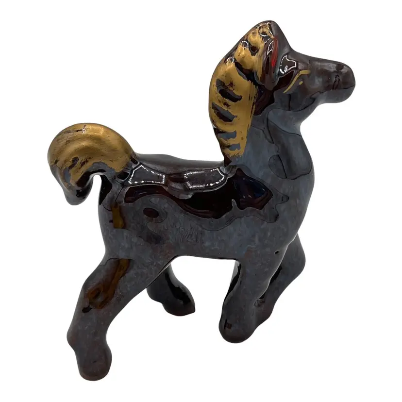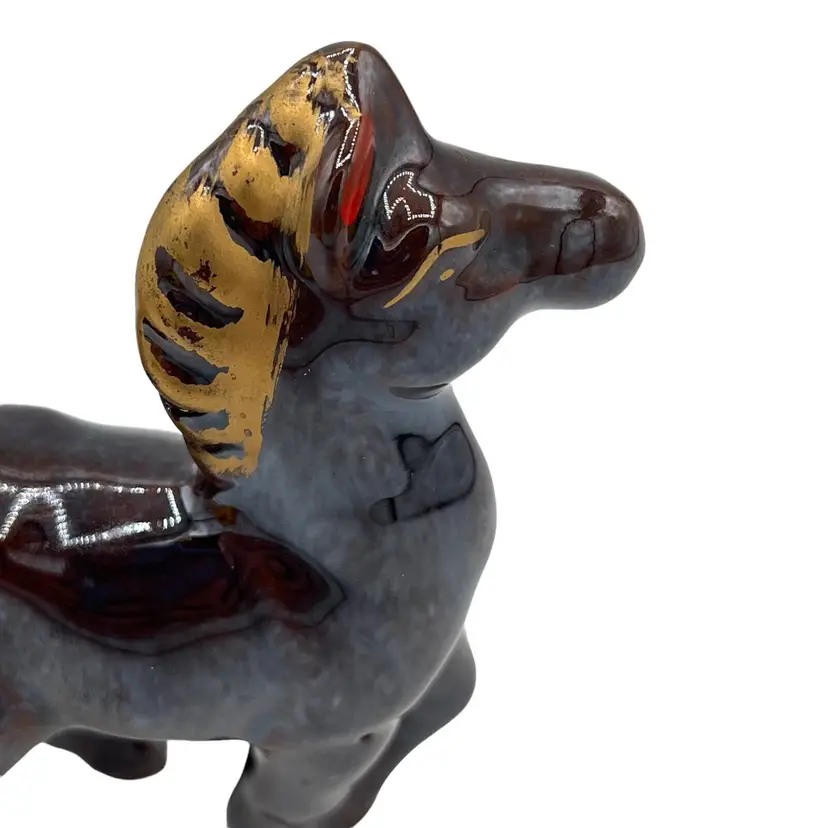 Vintage Red Ware Ceramic Brown with Gold Mane and Tail Horse Pony Figurine 4.25"