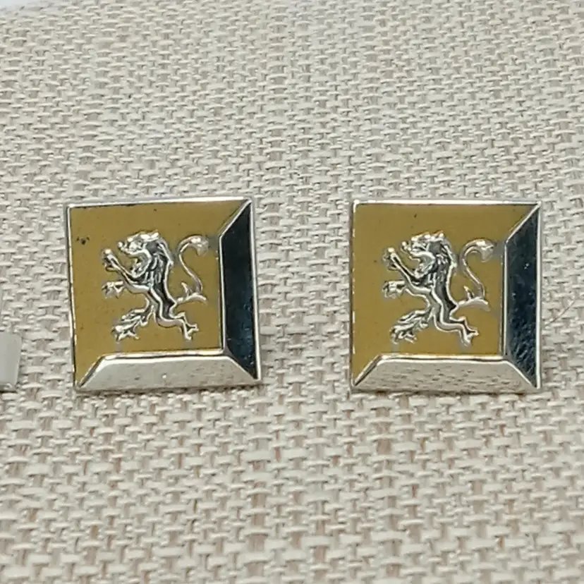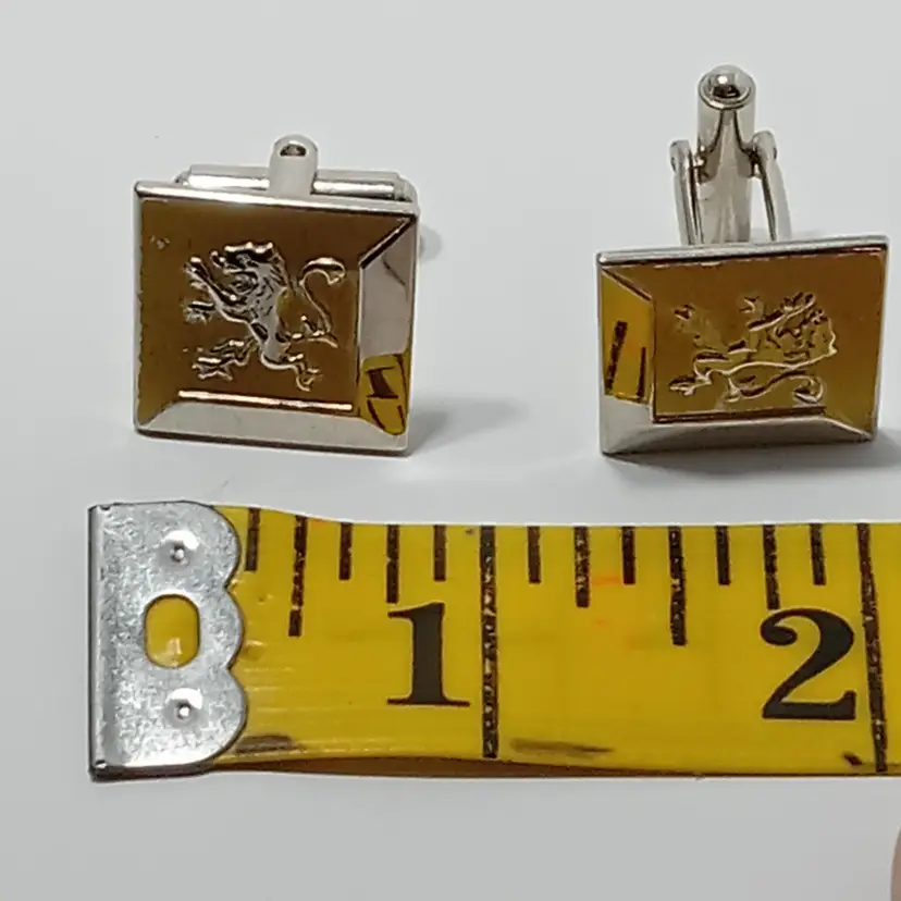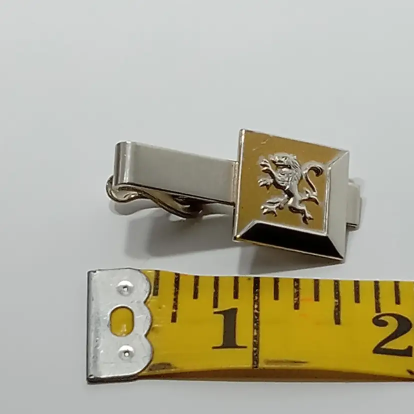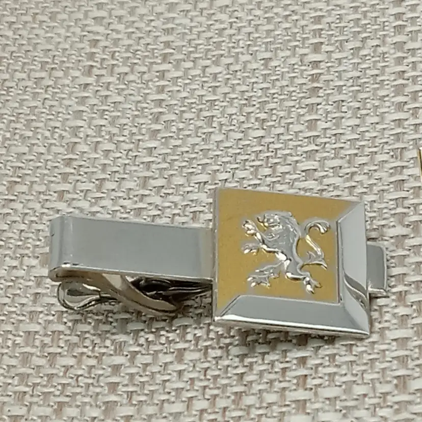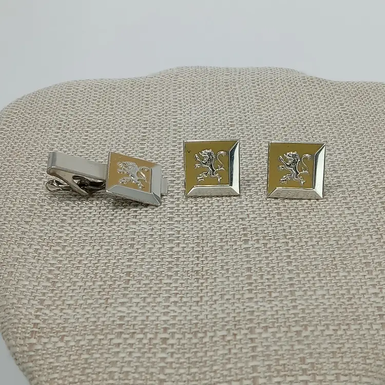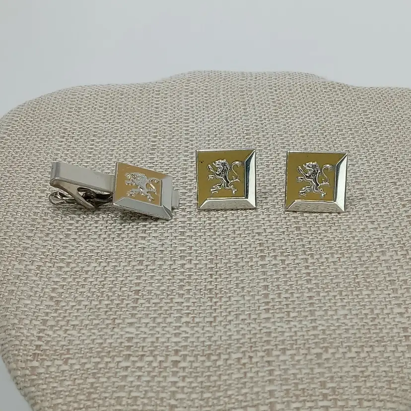Add a touch of vintage regality to your style with this stunning tie clip and cufflink set. The intricate design features a majestic lion that exudes strength and power. The silver and gold color combination adds a touch of elegance that complements any outfit.