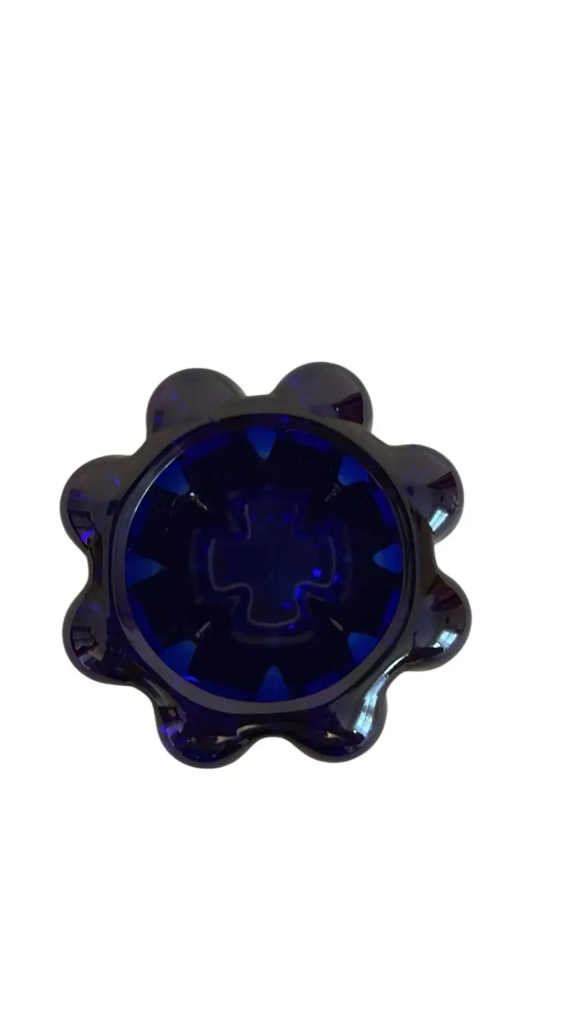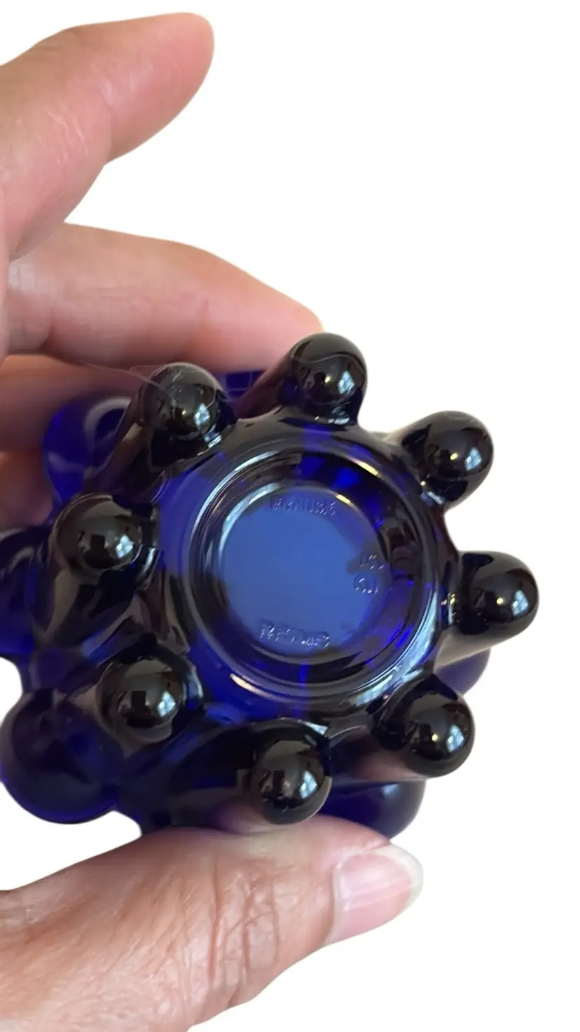 Vintage Reims Cobalt Blue Glass Candle Stick Holder Ribbed Exterior Made in France Made to hold one candlestick Measures approximately 2.25”H x 2.5”W Bottom marked Reims, France Excellent condition