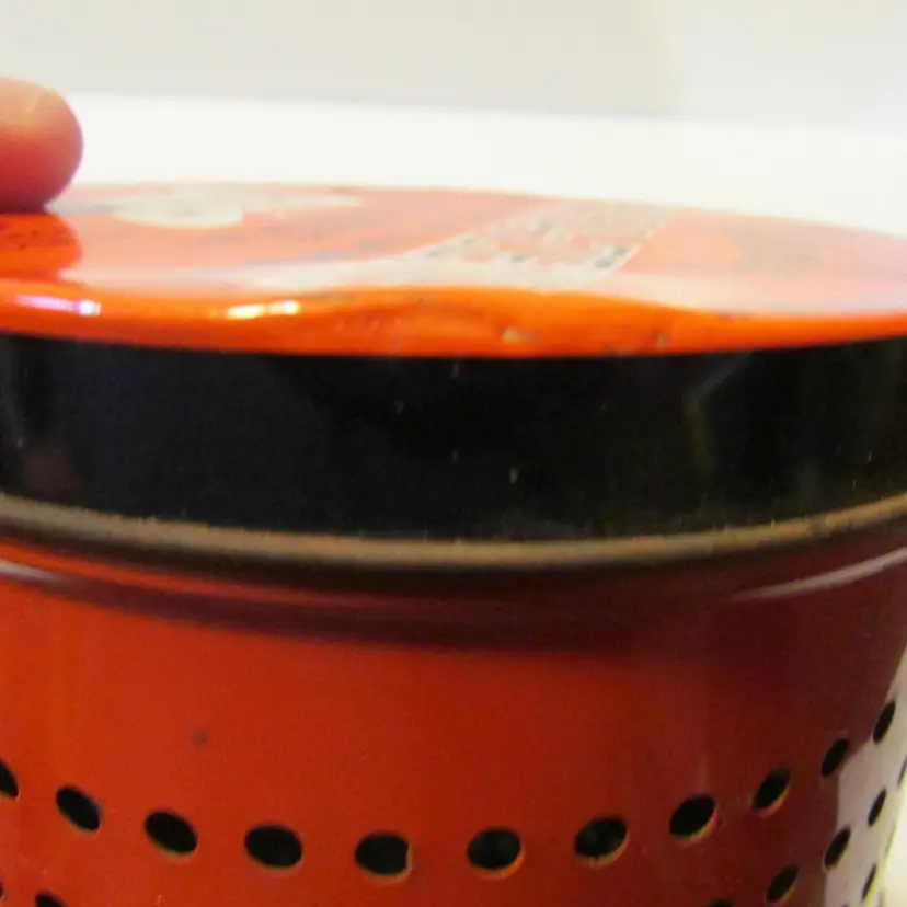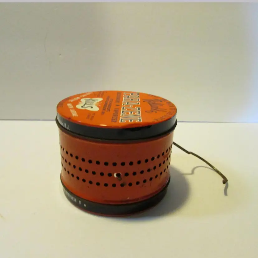 This tin has a small dent on the side, but overall it is a lovely piece. This would be a nice piece for a vintage Halloween display. It is about 3 1/4" x 4" x 4". This is shipped from a smoke free home. Thanks for looking! locbt
