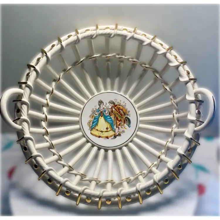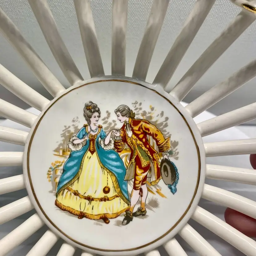 8.5” diameter No chips or cracks Depicts a courting Victorian couple