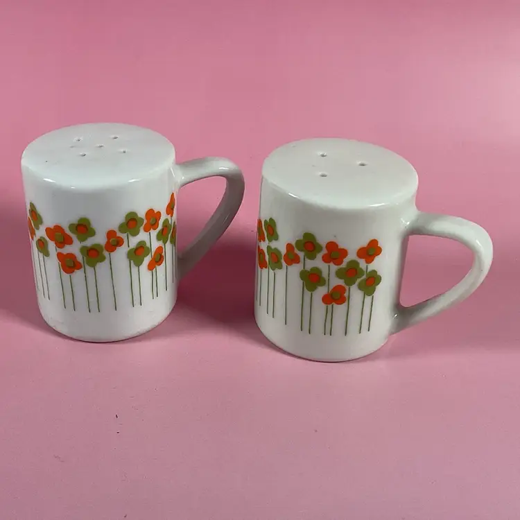 1970’s Takahashi retro salt & pepper shaker set. Great pre owned condition. No chips or cracks. Approximately 2.5” H