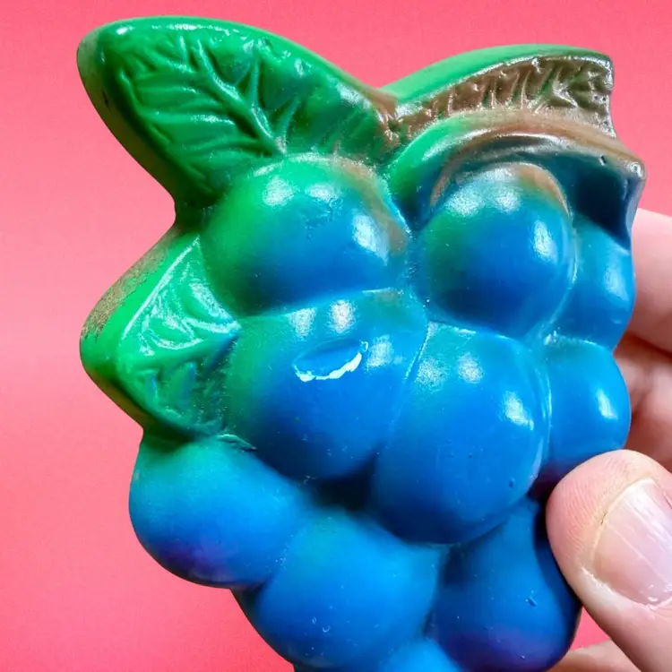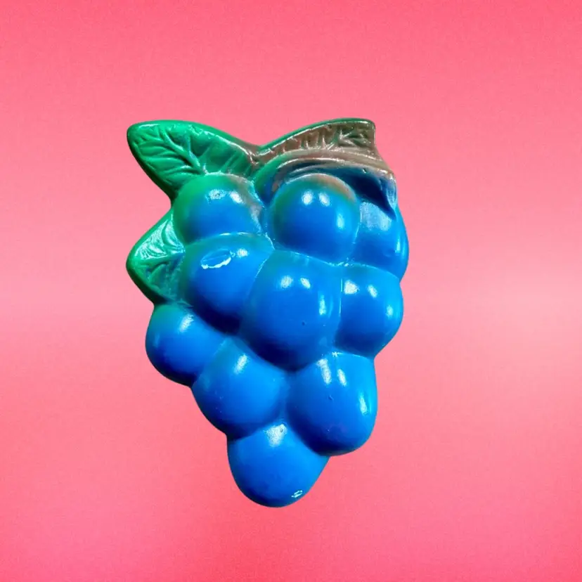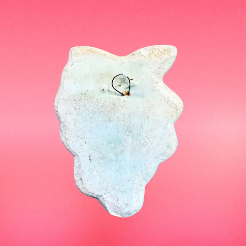 2.5”x3.5”. Chalkware Grape Cluster to add vintage charm to your wall. One of the grapes has a “dent”/slight chip, see pic. Has metal loop for hanging, can’t say how trustworthy it is! Unbranded, no makers mark.