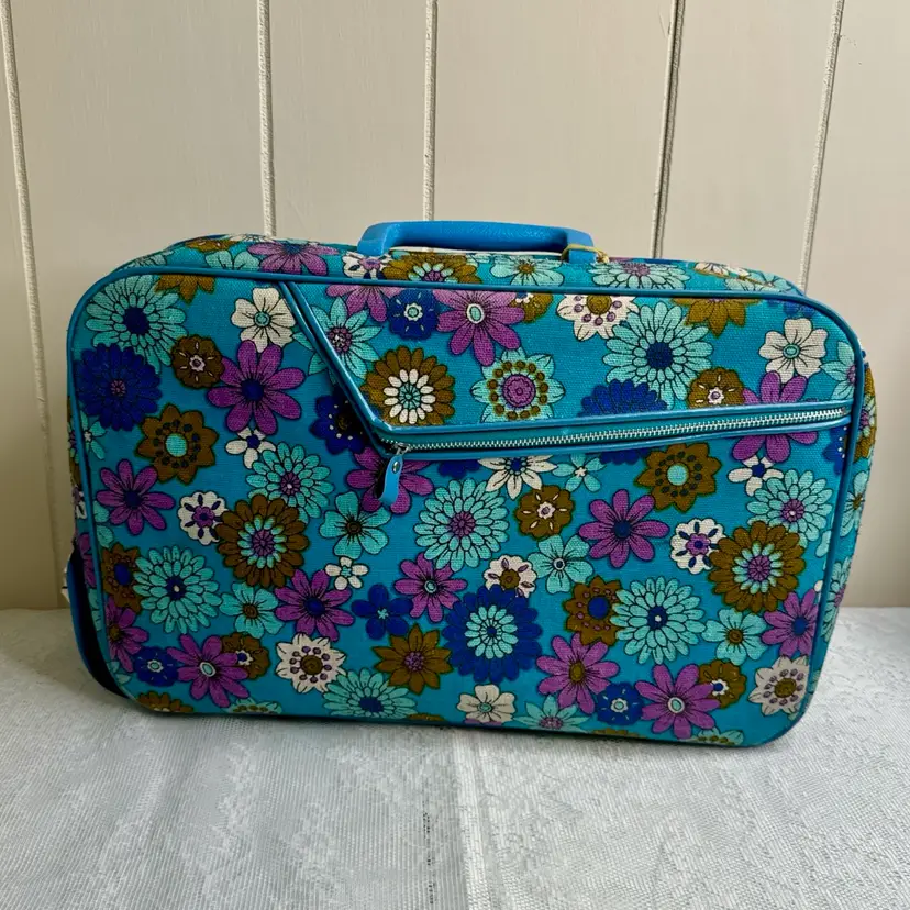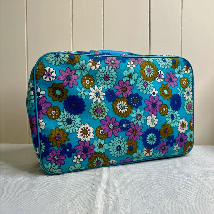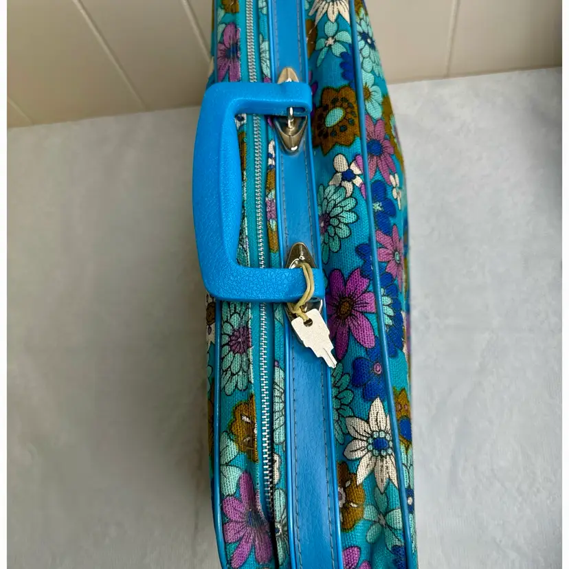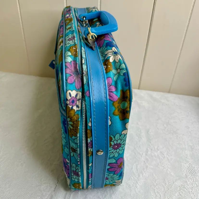 Amazing retro floral pattern vintage suitcase with zipper lock and key. It is in excellent condition with very little wear and very clean. It measures approximately 16.5” L x 10.5” H x 4” W
