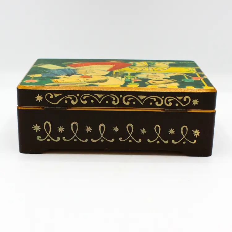 ** Condition: Good vintage condition - Pre-owned - No chips, cracks or repairs - Wear consistent with age - Lid is slightly lifted - Music box tested and it works - See photos