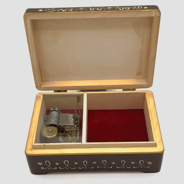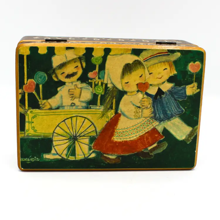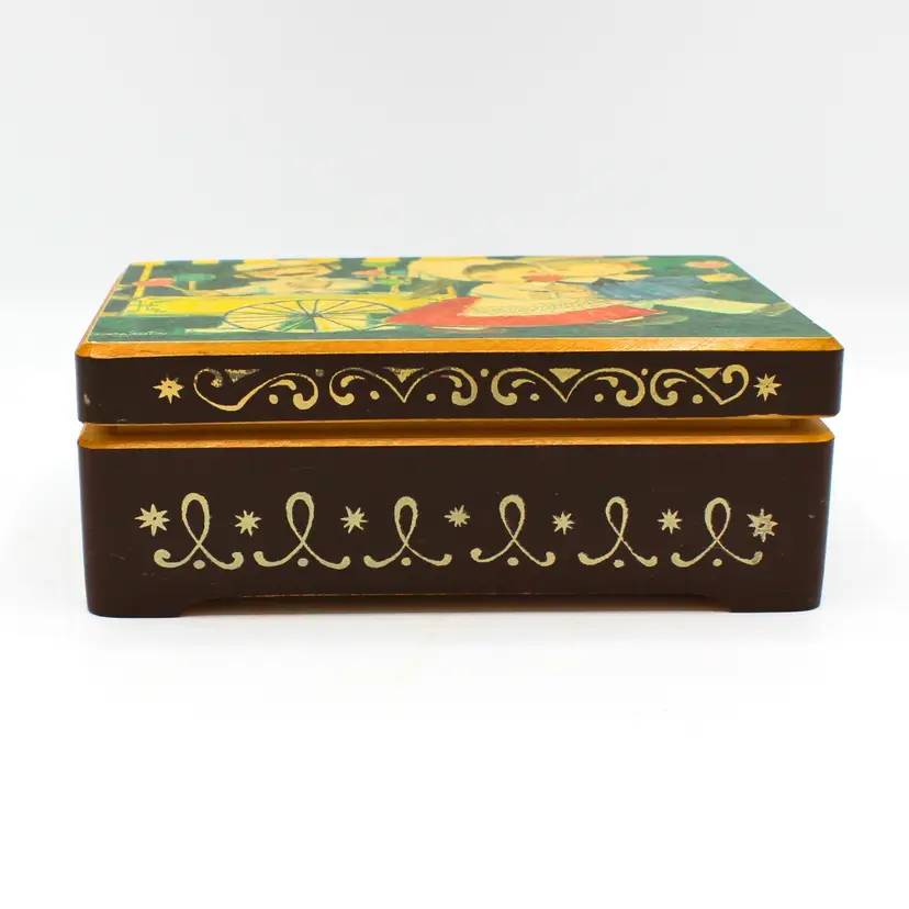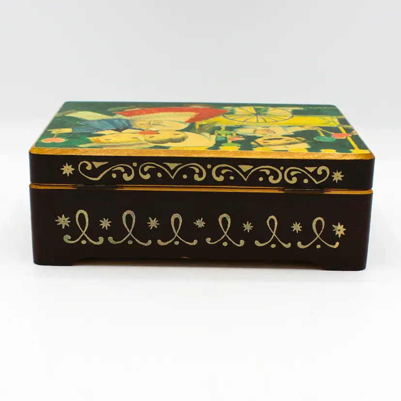 • Authentic Swiss Reuge spring-wind movement • Plays “Doctor Zhivago – Lara’s Theme” • Lid artwork by Juan Ferrandiz (Dutch children scene) • Red felt-lined trinket compartment • Wind-up key on underside • Tested and plays beautifully • Vintage circa late 1960s–1970s