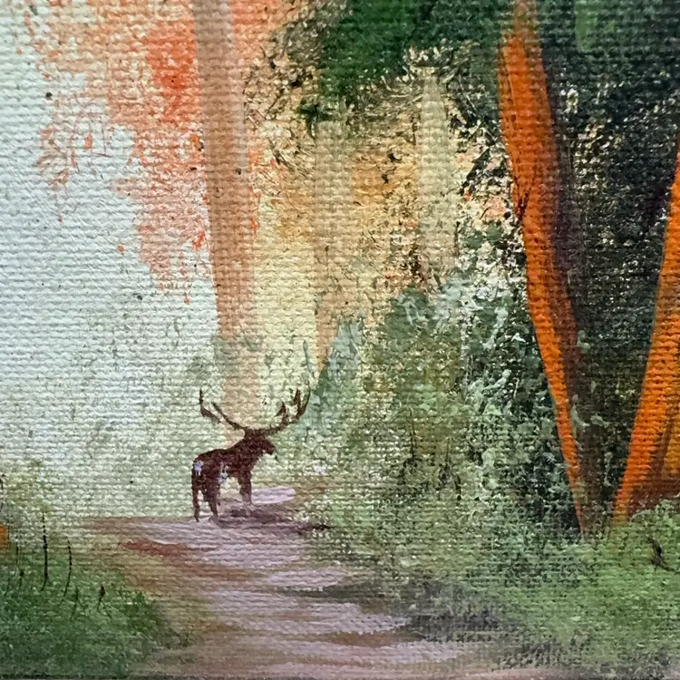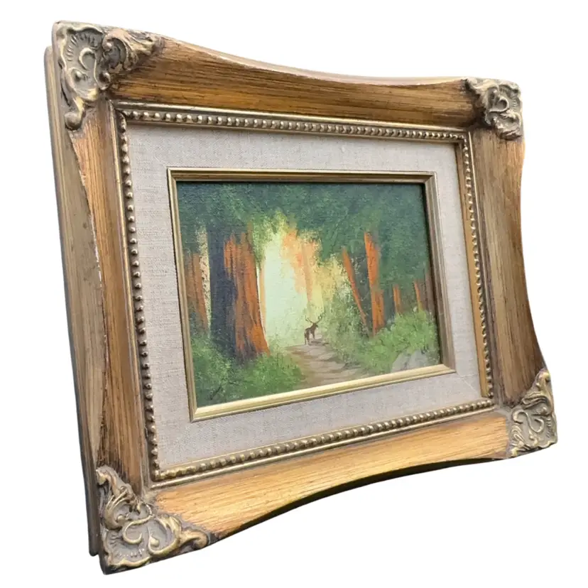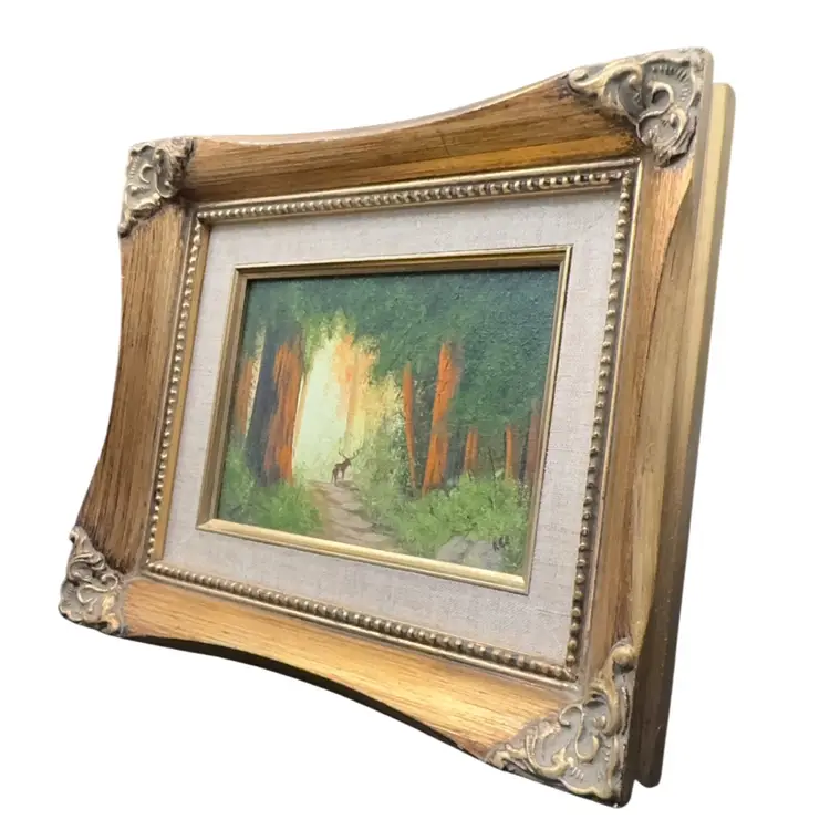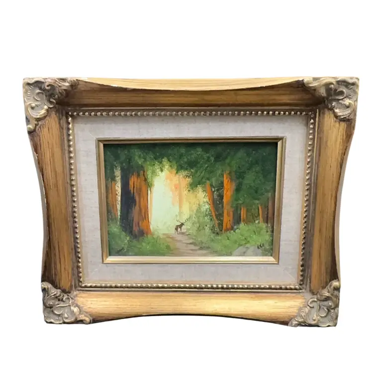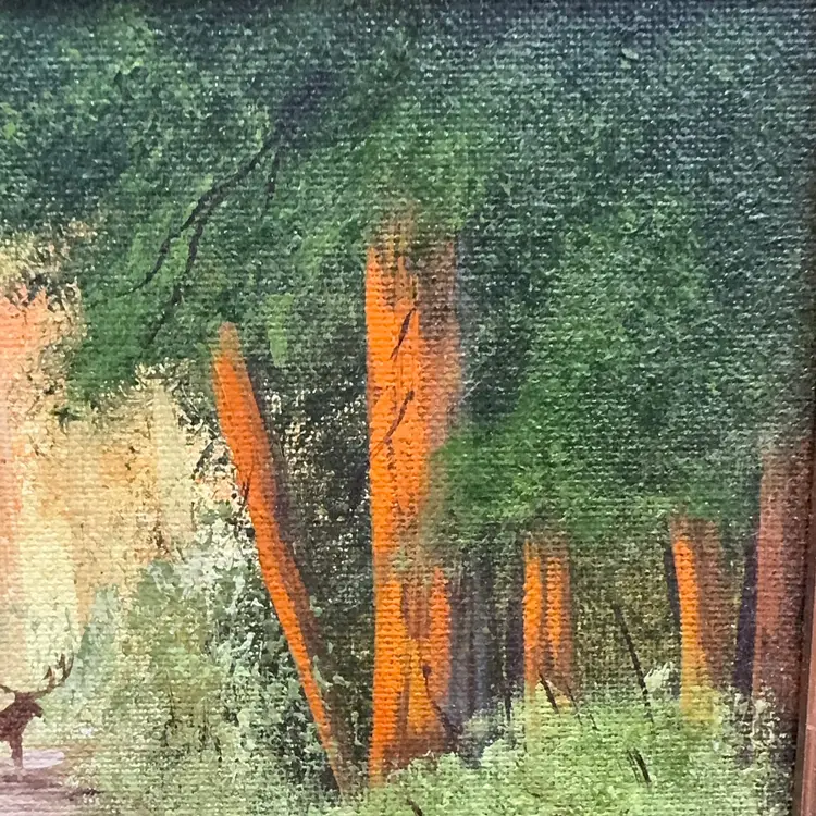 11”W 91/2”T No chips, cracks or brakes and wonderful vintage hand painted condition. It’s in a beautiful frame. It has a RGE on the front then it has on the back of the photo with the number.1113 a, RGEllis. Very nice piece of art well done, beautiful accent for individuals that love a rustic look..
