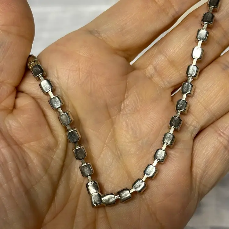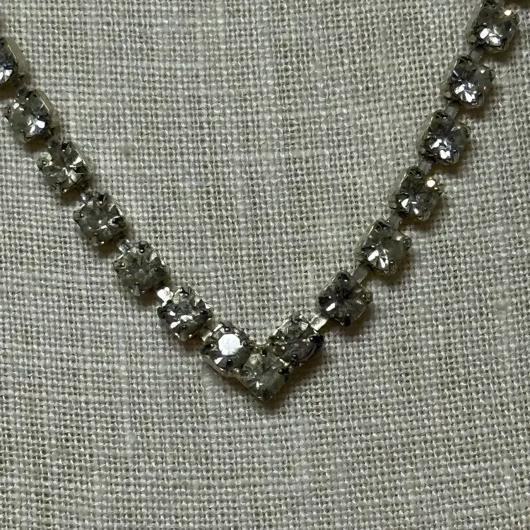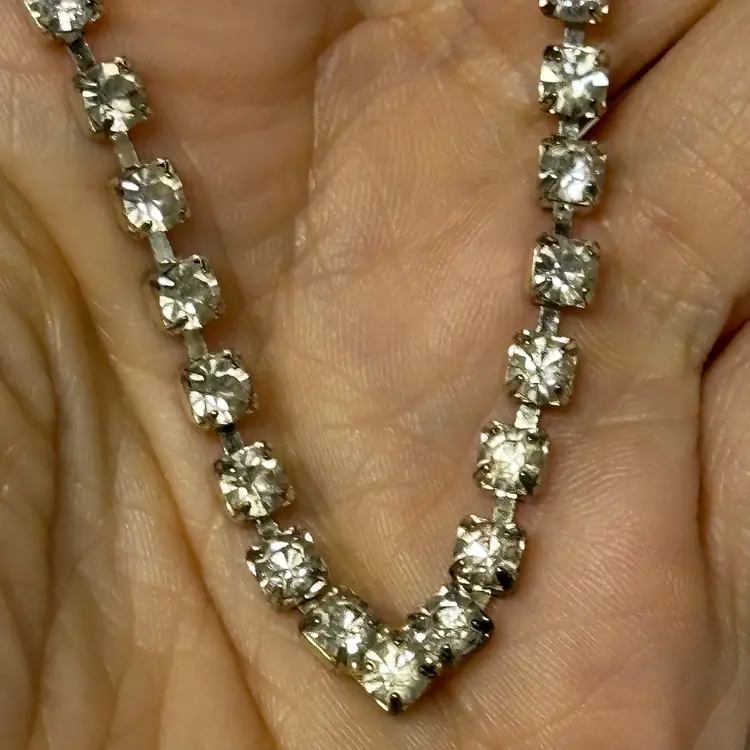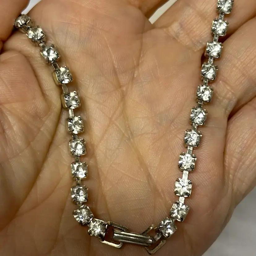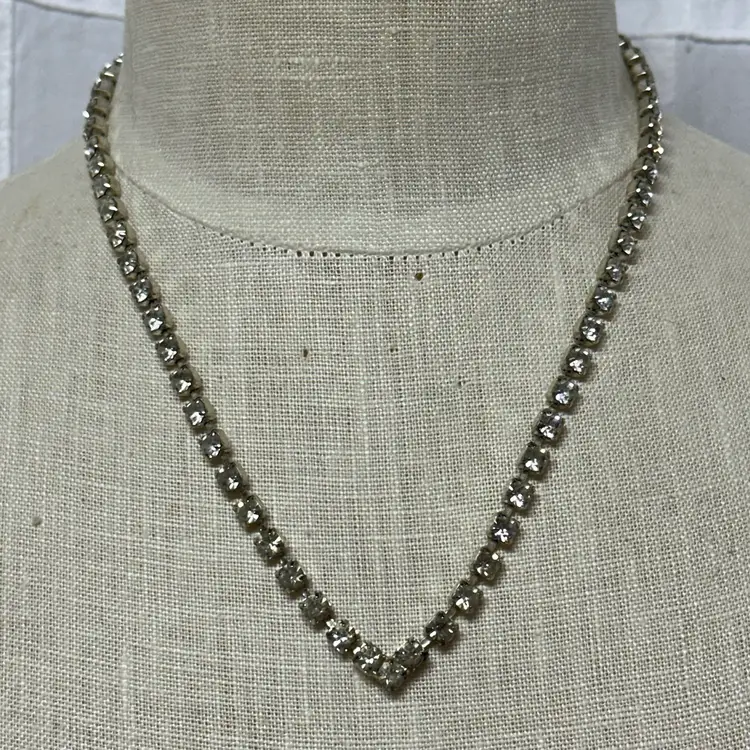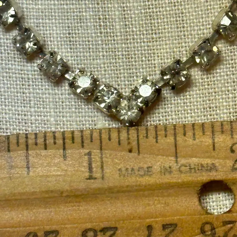 So pretty! No yellowing or dark stones I can see. Overall, nice condition. 16”