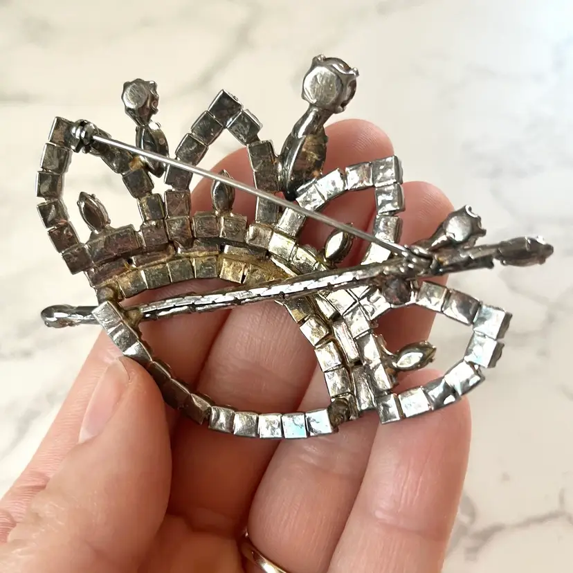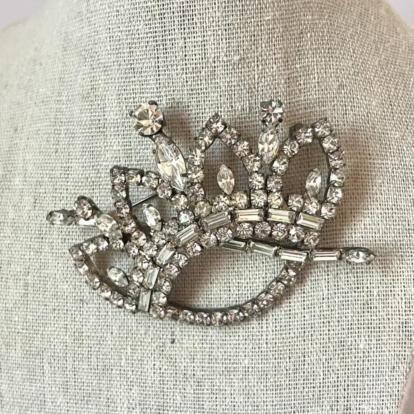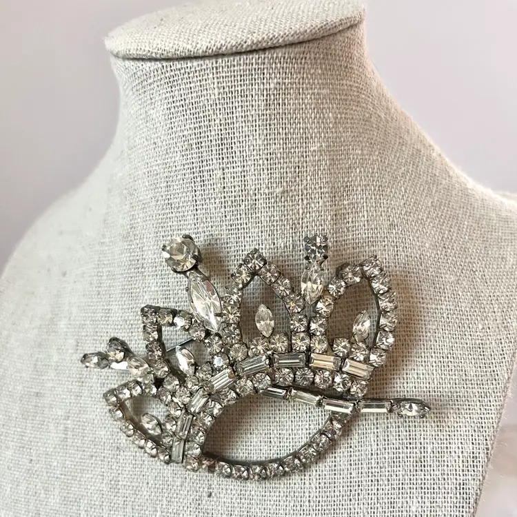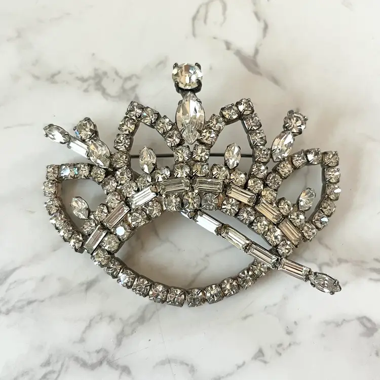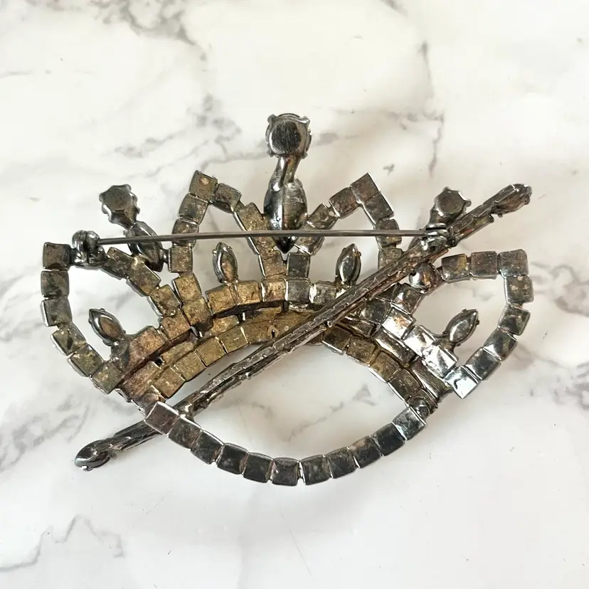 This vintage brooch is in excellent condition. No dead or missing stones. It measures about 3 inches in length. Really unique and sparkly!