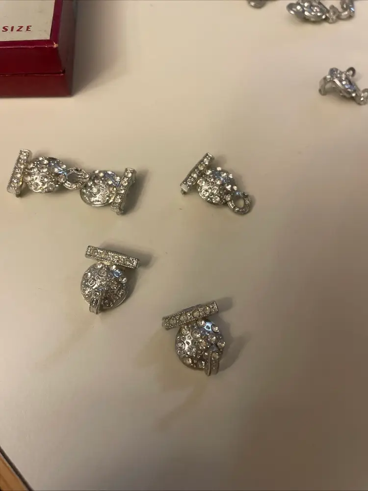 Set of five vintage rhinestone clasp fasteners