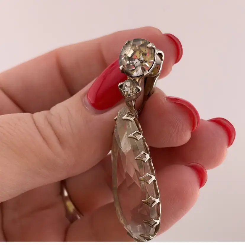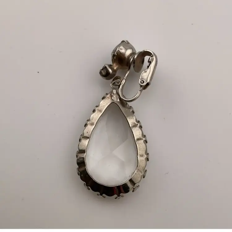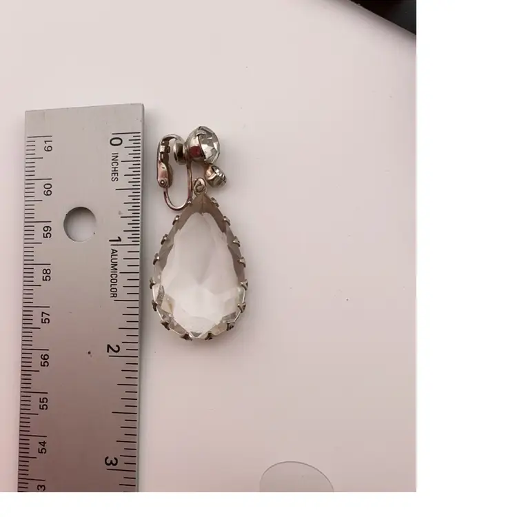 Earrings have 2 rhinestones at the top with a large teardrop that is cold like glass, all prong set.