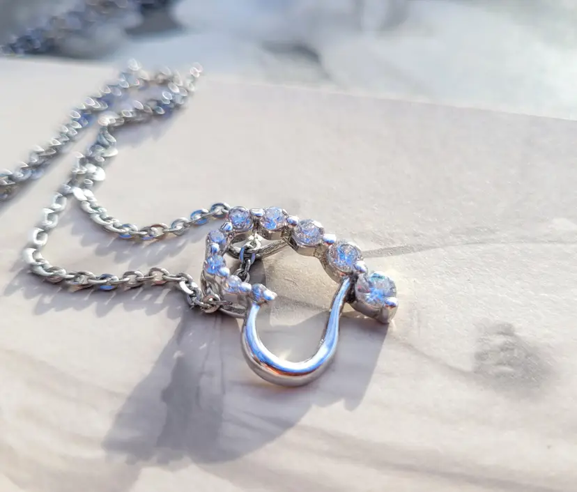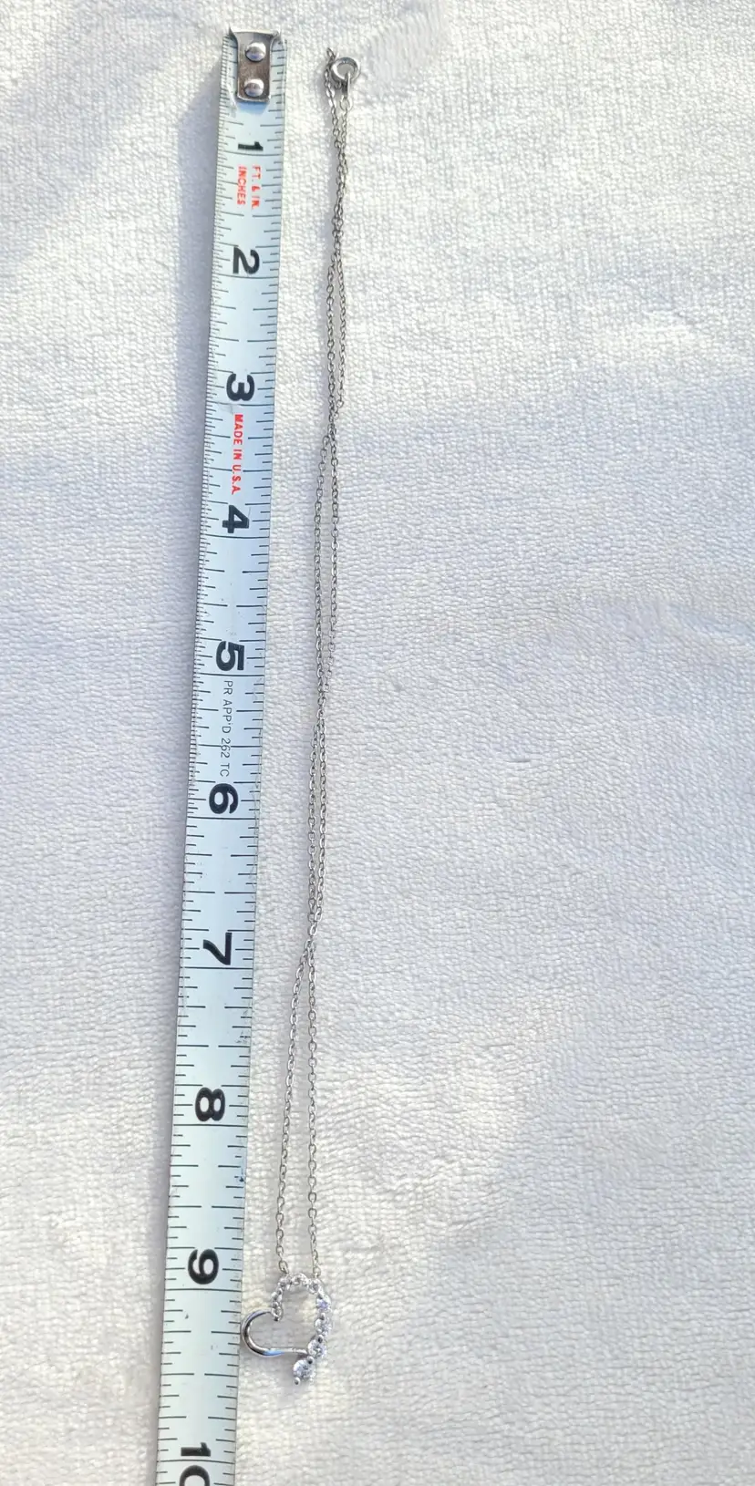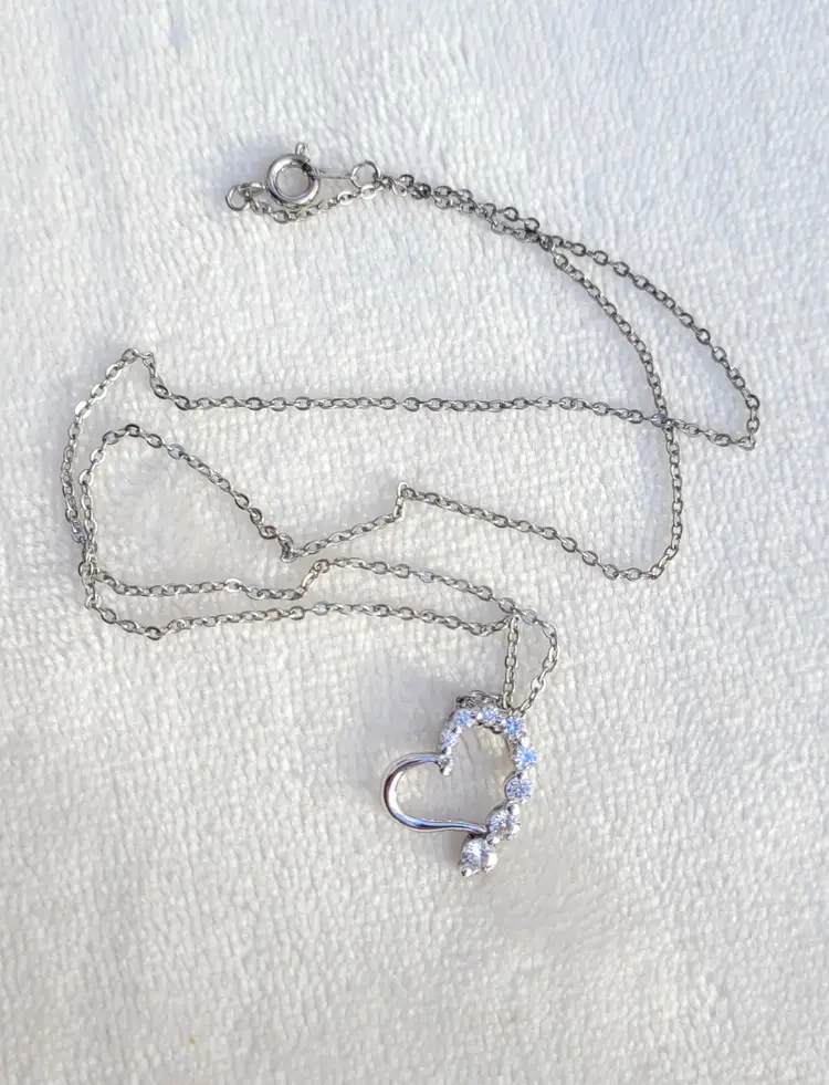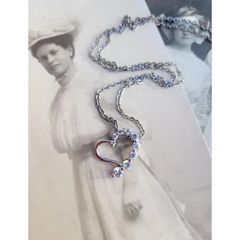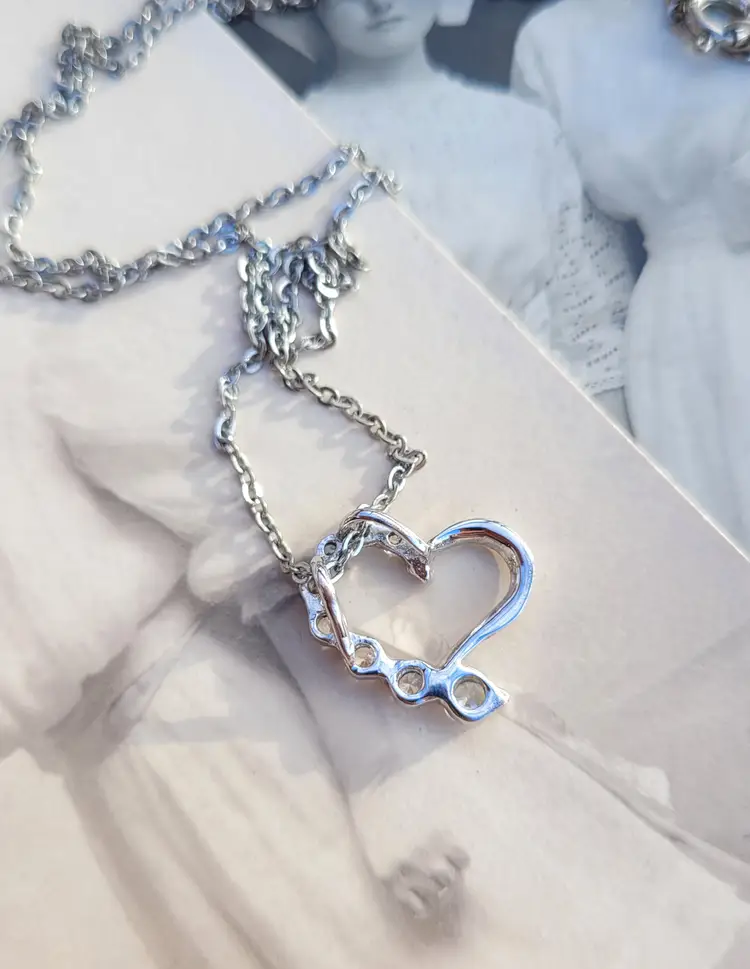 Sweet little rhinestone heart necklace, on an 18" chain. In good condition from an estate and circa 1990s. Please see pictures for details and measurements.