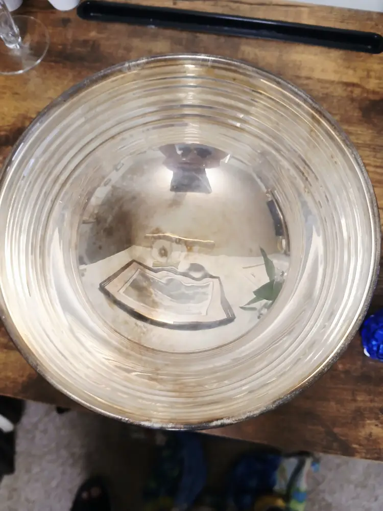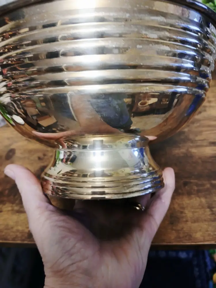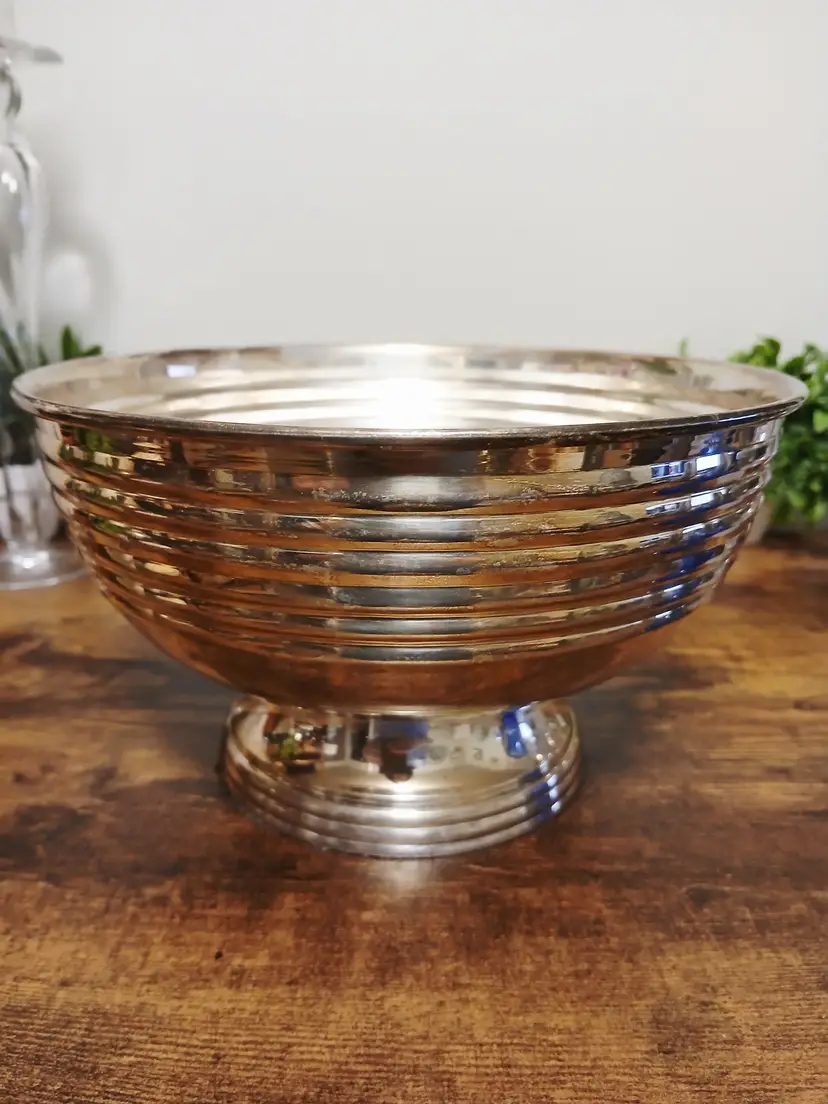 Add a touch of elegance to your decor with this vintage bowl. Featuring a classic ribbed design, it's perfect for serving or as a stunning centerpiece. A timeless addition to any collection. Measures approximately 8" diameter × 4 3/4 tall