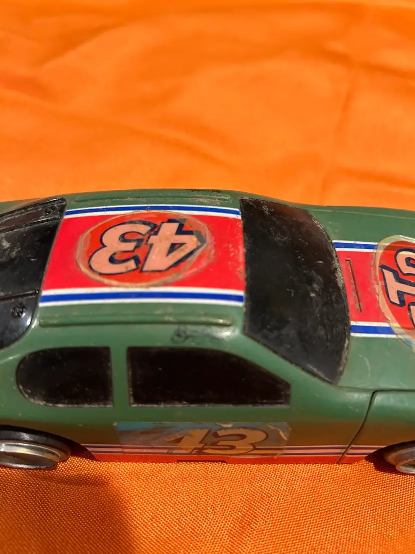 The Vintage Richard Petty Plastic Car is a collectible item that pays homage to the legendary NASCAR driver, Richard Petty. This piece is perfect for fans of auto racing, specifically NASCAR, looking to add a nostalgic touch to their collection or display. The plastic car serves as a reminder of the storied career and achievements of Richard Petty in the world of racing.