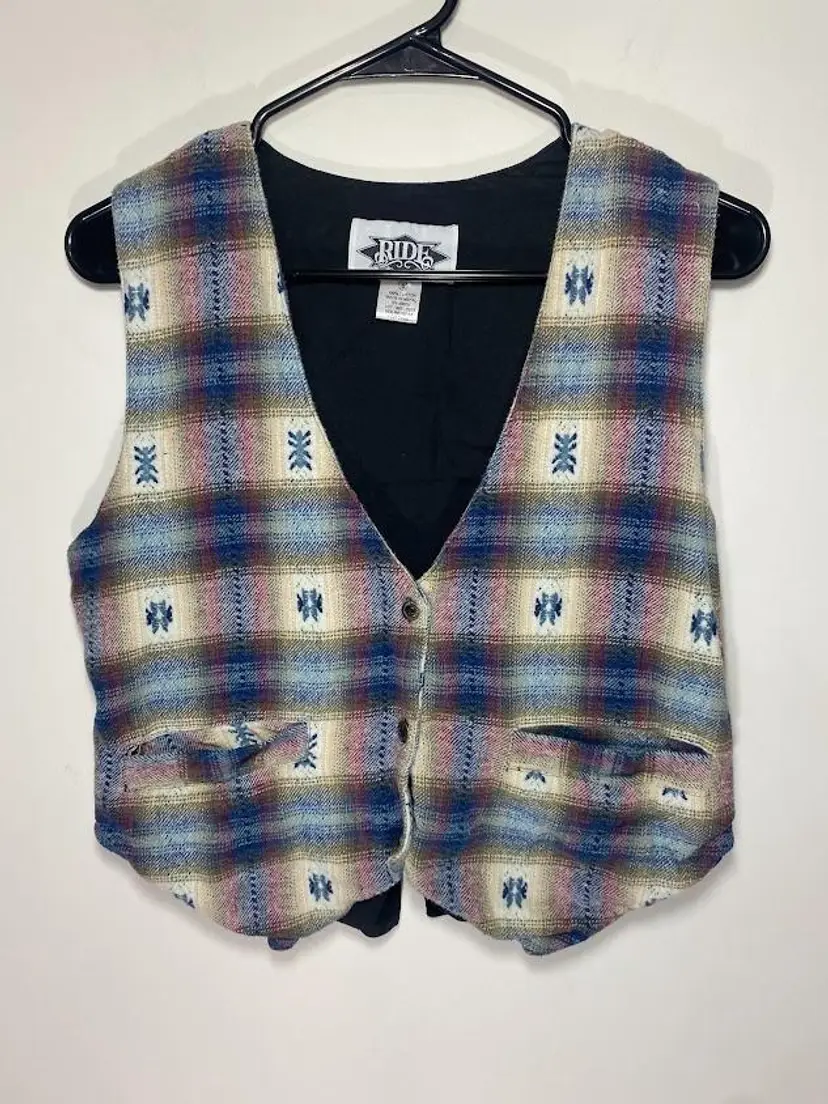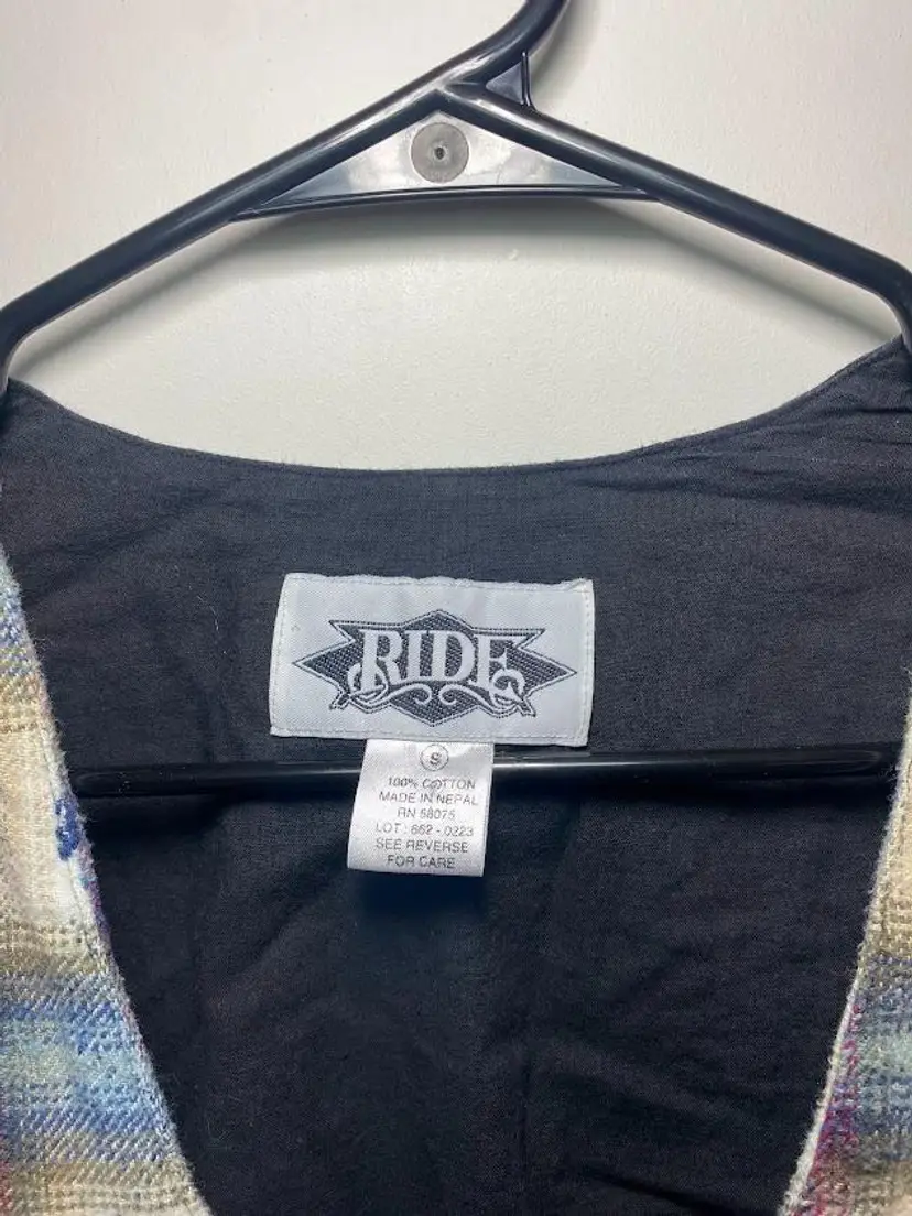 Women's vintage Ride multicolored flannel front vest. 100% cotton. Good condition. Size S. Pit to pit: 19". Total length: 20".