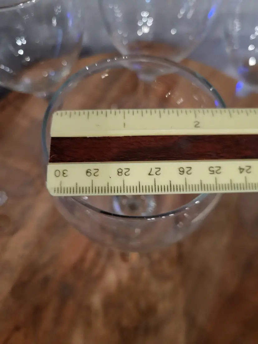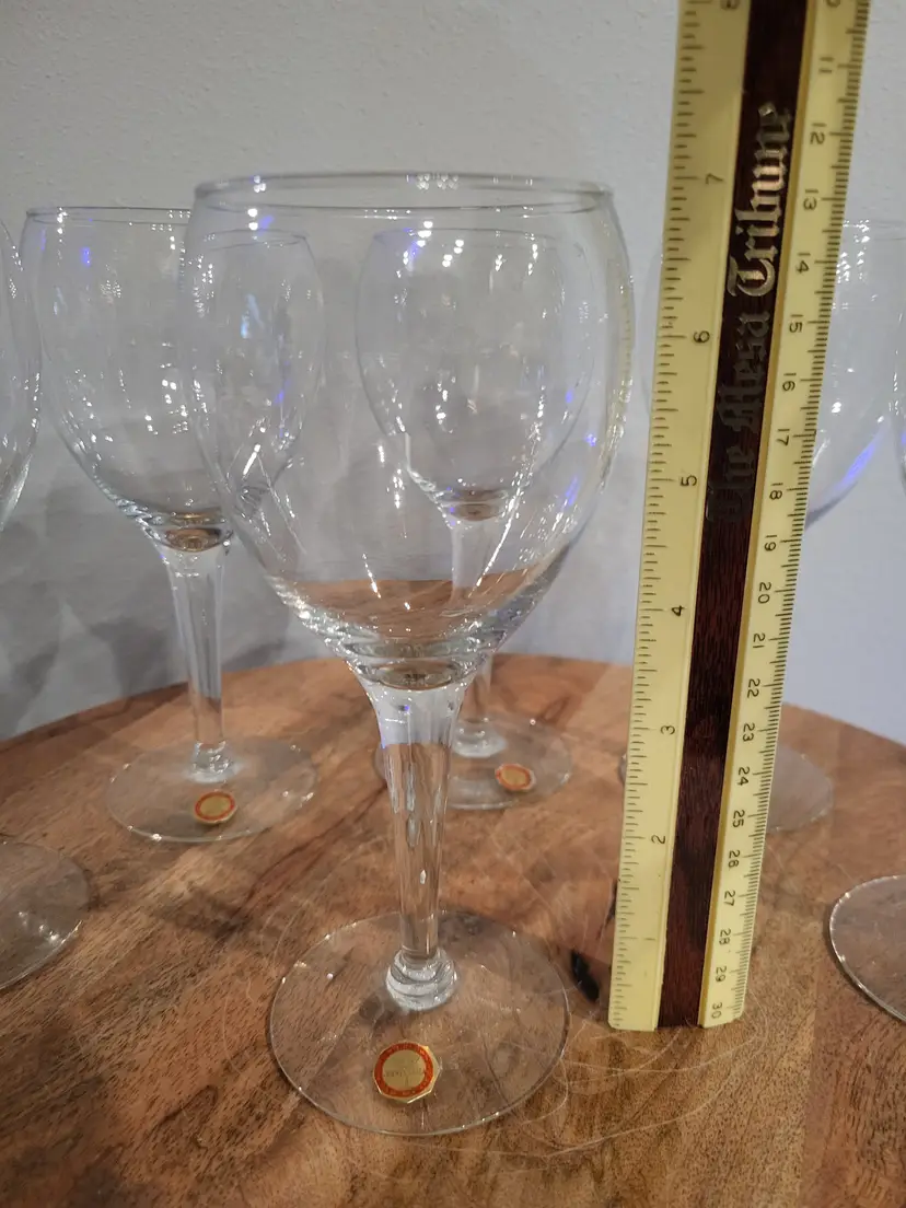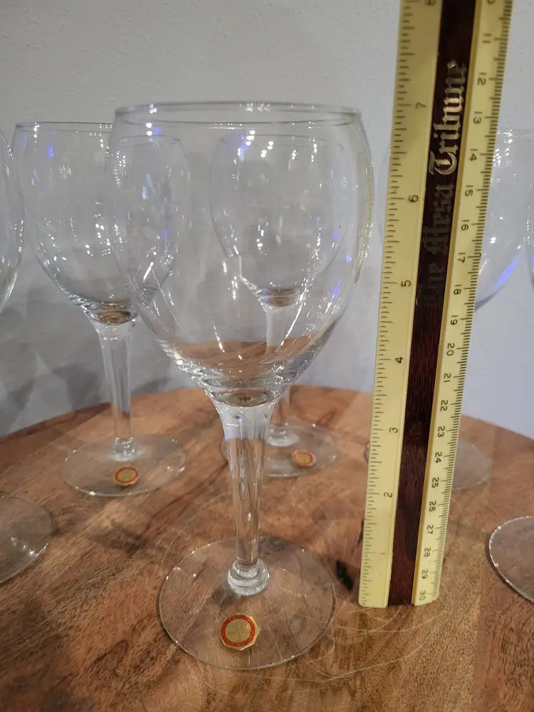 Nice shape set of 6 glasses/goblets. Sticker on base of glasses. One glass does have 2 tiny chips on base hardly noticeable, see picture and one glass has an airbubble on base. Shipping cost is based on your location, size and weight of box item is shipped in. If you feel shipping cost is to high let me know what your zip code is and I can see if there is a cheaper option. Shipping is done by USPS, I choose cheapest option when listing but shipping will be USPS. I do combine shipping if you buy more than one item from my store. Any questions please do not hesitate to ask.