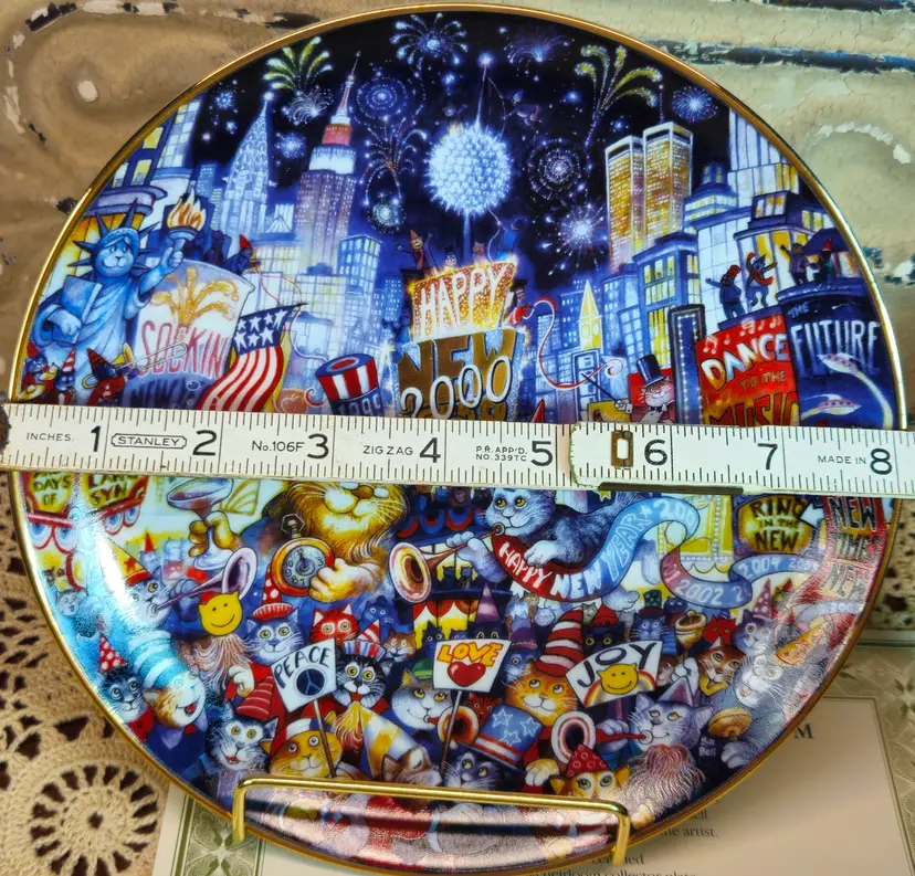 This adorable collector's plate is in excellent, used condition, with no appreciable chips, scratches or cracks. Measurements are depicted in the pictures of the item or listed in the description of the item. Please review the photos, as they are part of the item description. Photos will always reveal noticeable defects, as will my description. Any white “blemishes” that are not pointed out in this section are from the lighting that I use for my photos. If you need clarification, please reach out to me.